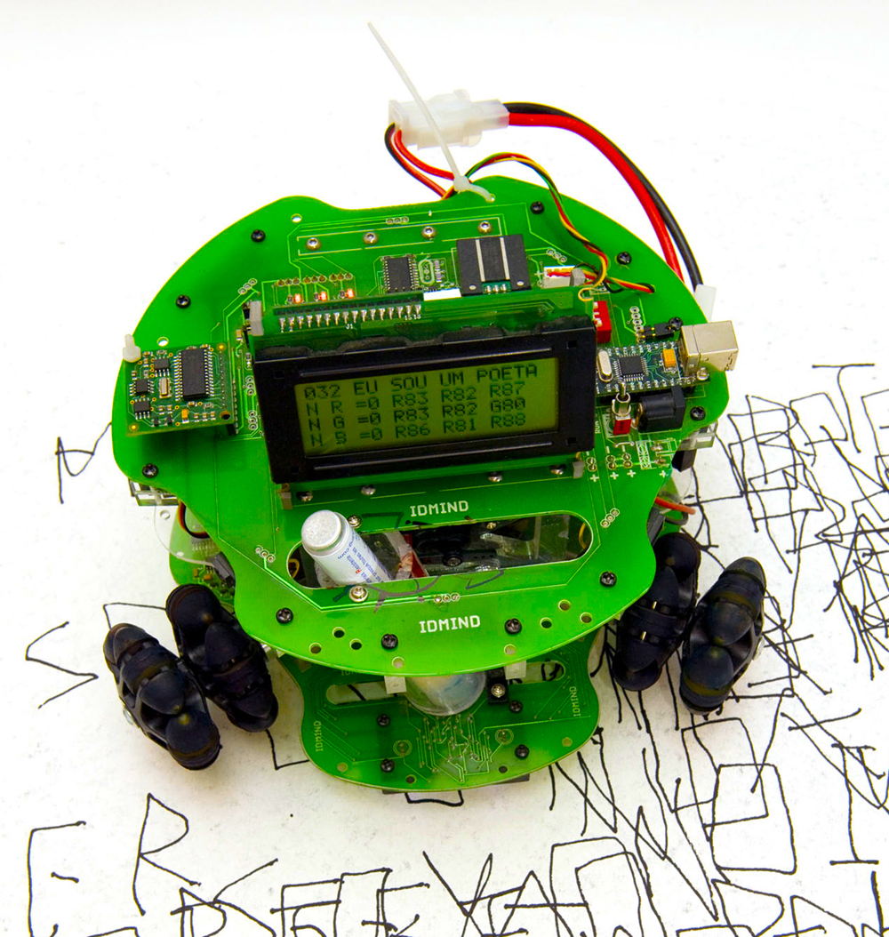 ISU is an artrobot able to create its own paintings and write small poems and has also the ability to sign its works.