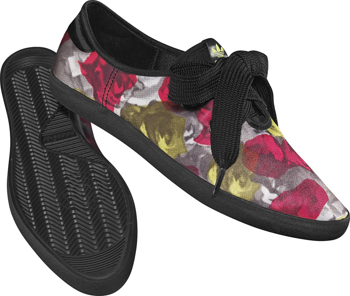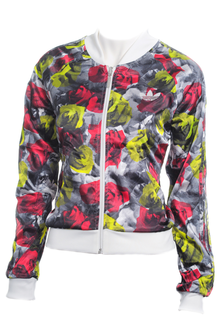 In line with the new season, Adidas is launching a new pair of shoes and jacket characterised by floral graphics and satin fabrics.