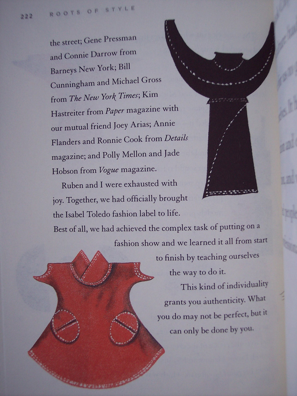 “Roots of Style: Weaving Together Life, Love, and Fashion” by Isabel Toledo is out now. An event about “Roots of Style” featuring Nina García, Fashion Director of Marie Claire, and Isabel and Ruben Toledo, was held on 29th March 2012 at El Museo del Barrio, New York. You can check out the details here: www.elmuseo.org/en/event/roots-style