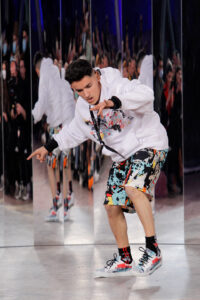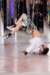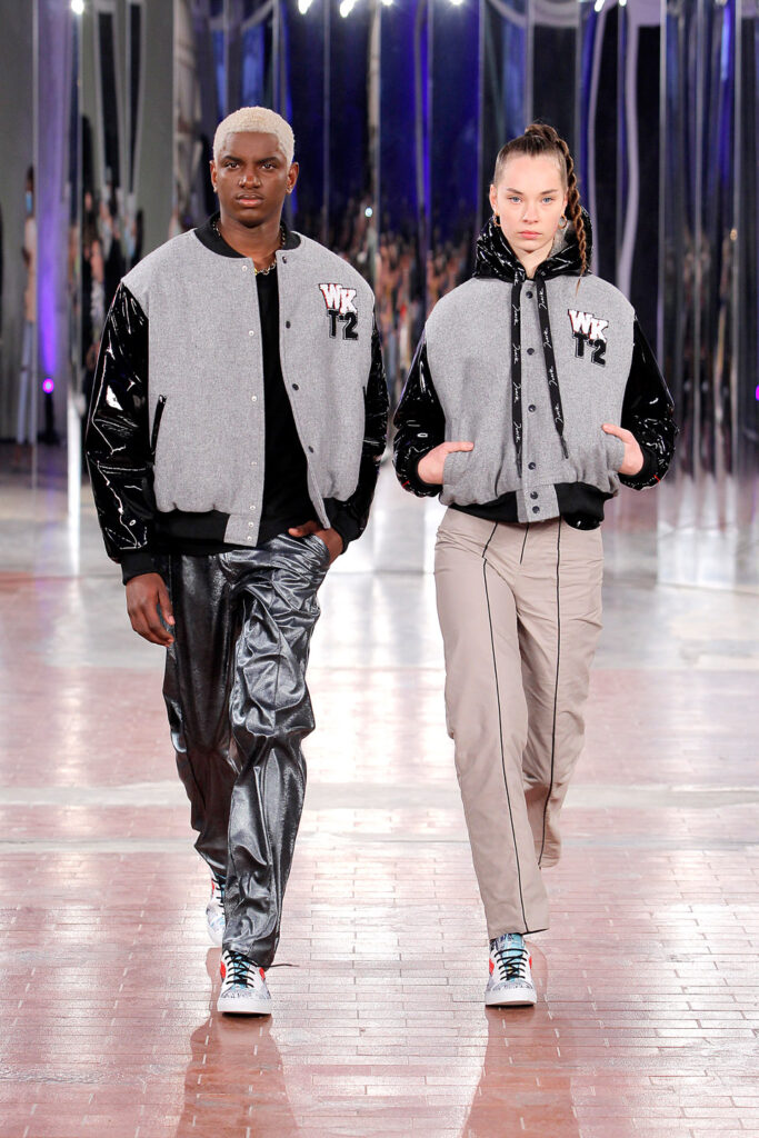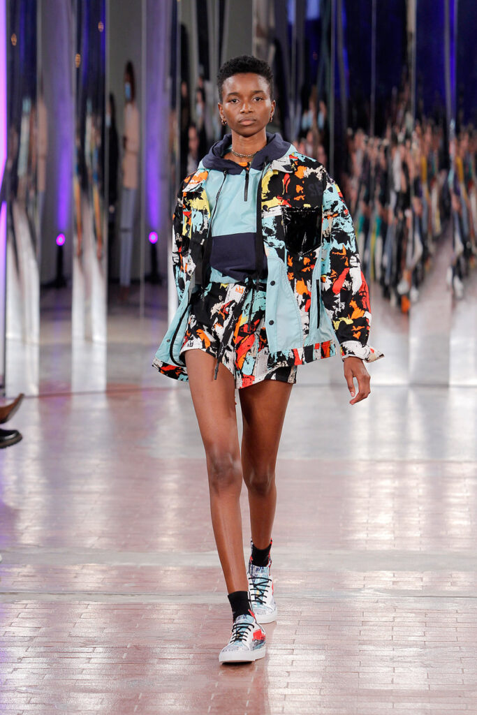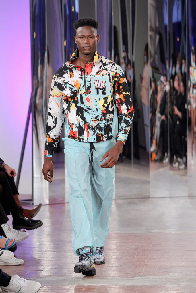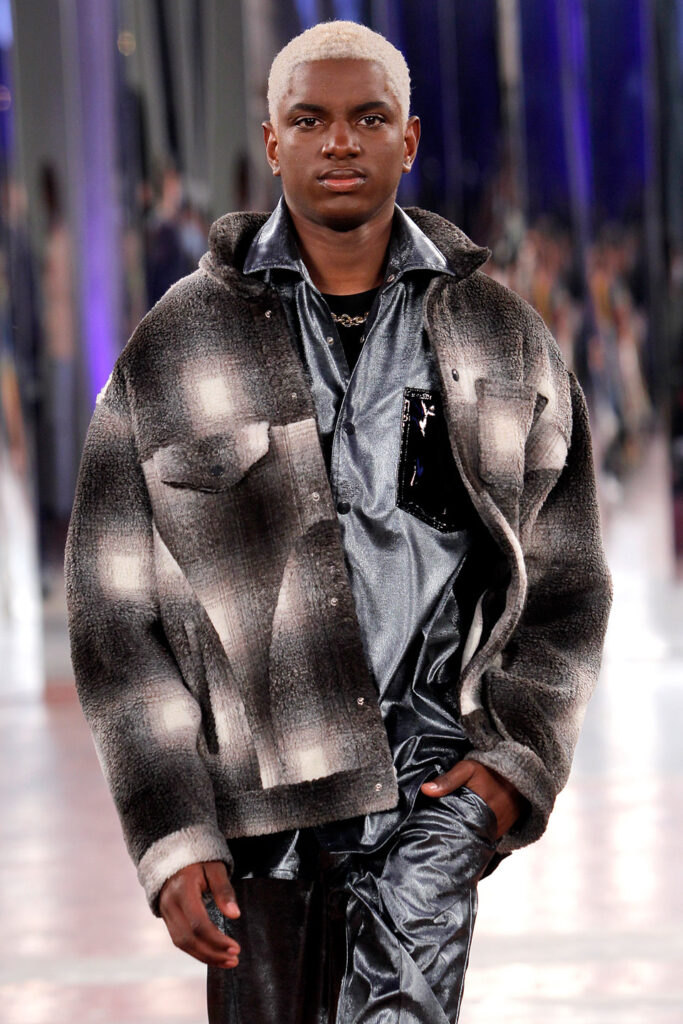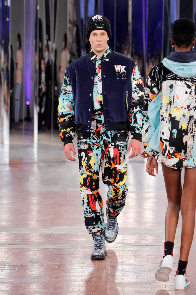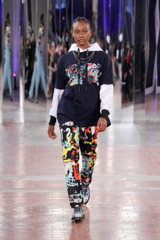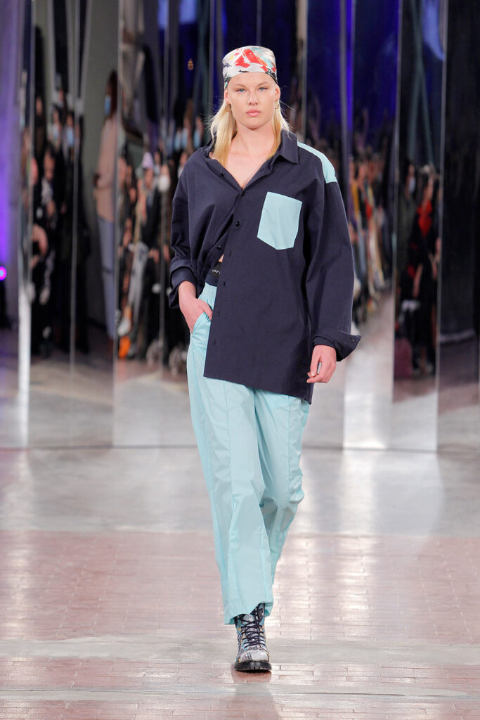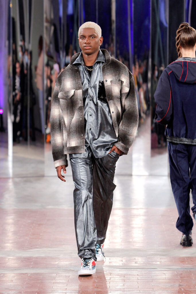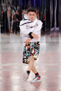 Lisbon born fashion designer Ana Duarte is showing with her label DUARTE since 2015 at ModaLisboa. Her current A/W 2022 collection is a bold and strong statement and embraces the concept of sustainable streetwear. Anna is following up her previous collection which was entitled “World Keeper”. It circles around the story of the dog Tadao, that fights environmental threats created by mankind. She draws her inspiration from street art and street dance – the show also included a street dance performance – and most of her pieces are unisex, layering and mix of materials are key. Duarte fabrics are well resourced as she does not want to harm the planet with her work but on the contrary, wants to make a statement that our way of living and consuming can safe our planet.