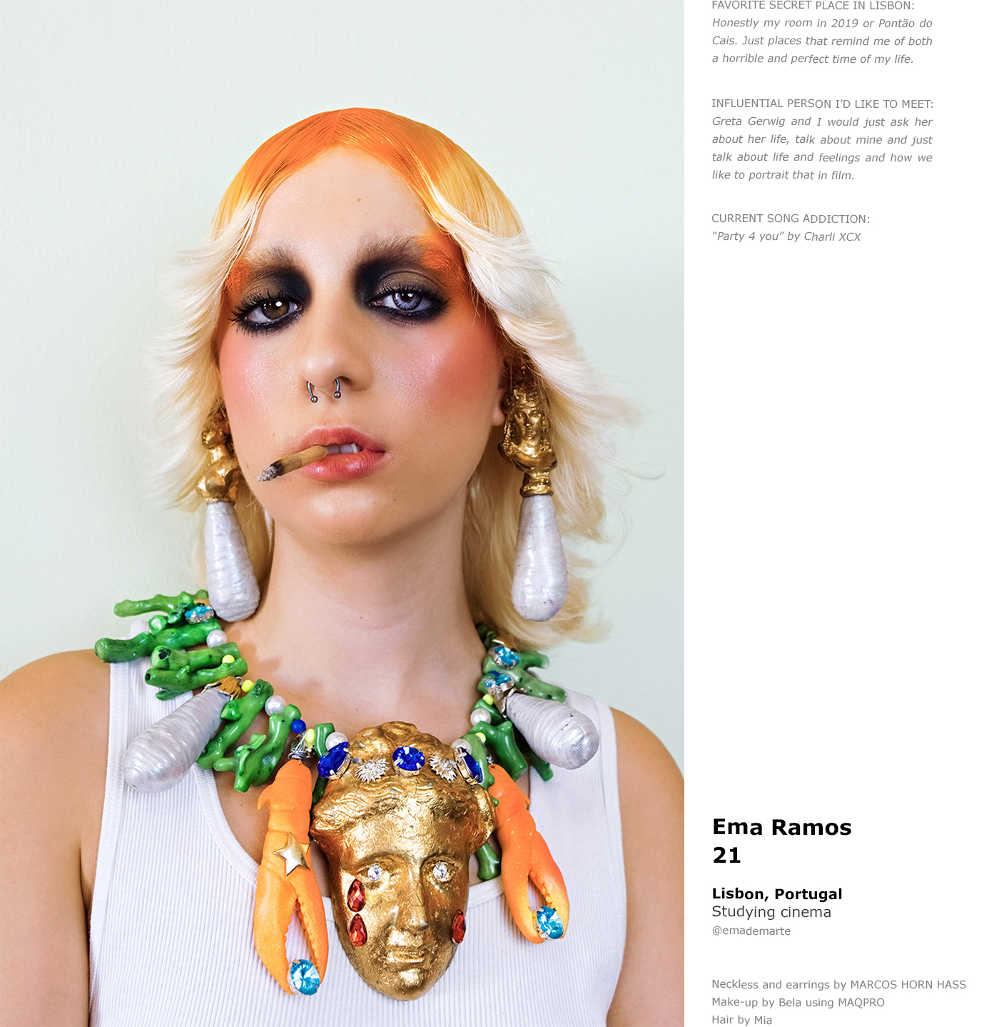 My inspiration […] is the vast amount of subcultures that have been emerging in Lisbon in the past 20 years. They are young adults now and want to leave a mark on society, similar like we did in the 70s/80s with the punk movement. All 18 people we portrayed have the following things in common: They are young, looking out for themselves, have the courage to be what they want to be and have their very specific aesthetic principles.