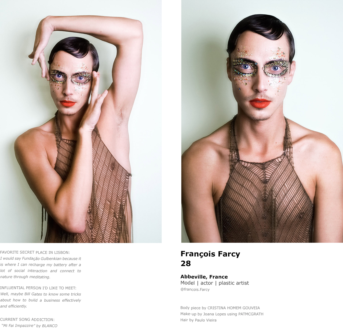 Models André Fernandes • Carolina Meleiro • Ema Ramos • Eva Pereira at Face Models • François Farcy at L´Agence • Ginho • Joana Lopes • Leonor Carneiro at Karacter Agency • Manuela Valente at Face Models • Maria de Carvalho at Face Models • Micael Cardoso at Karacter Agency • Mikeias Djeme • Pedro Sacramento • Rodrigo Semedo at Face Models • Sofia Teleliukhina • Teresa Gonçalves • Thomy • Tiago Lourenço