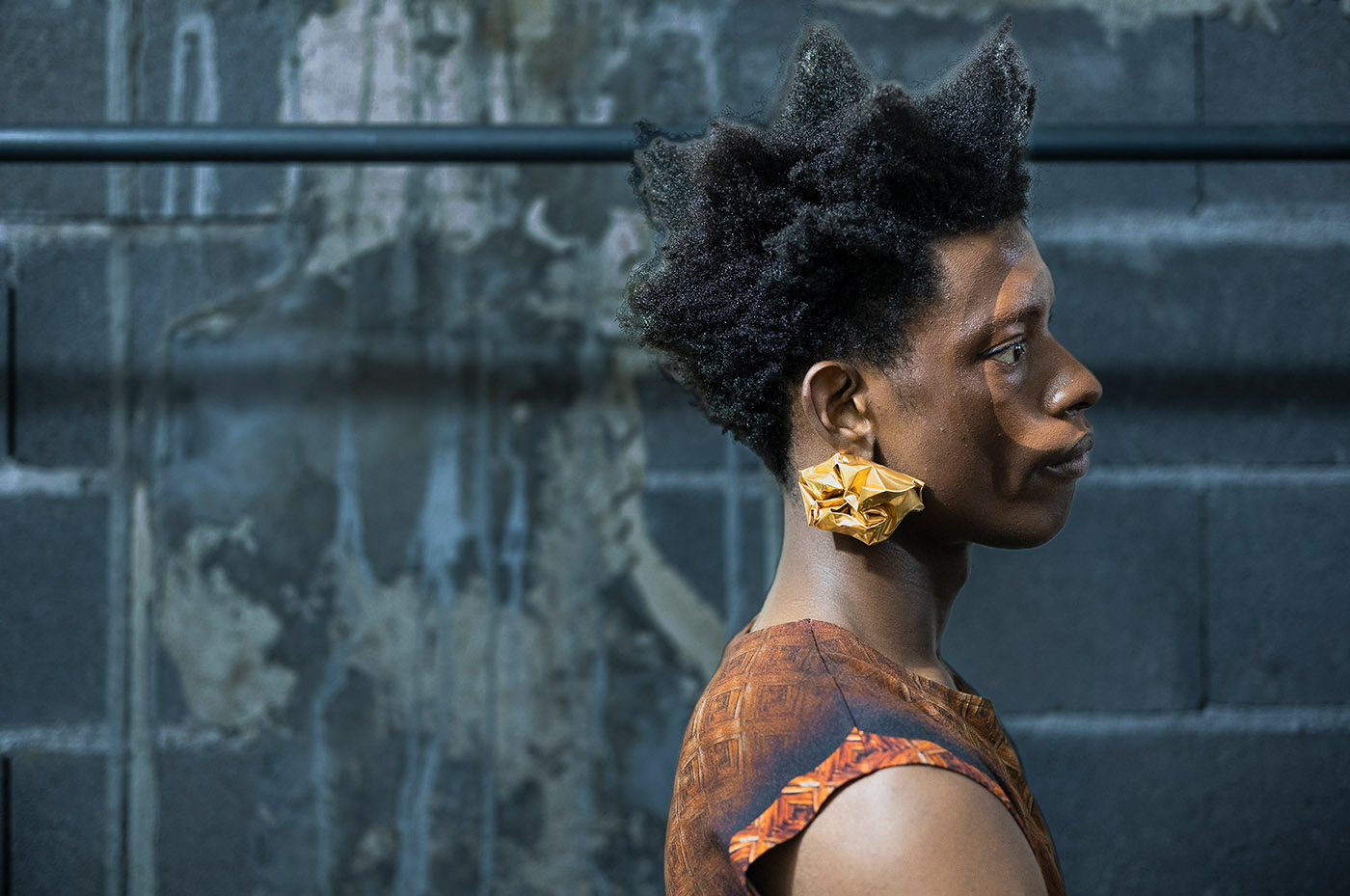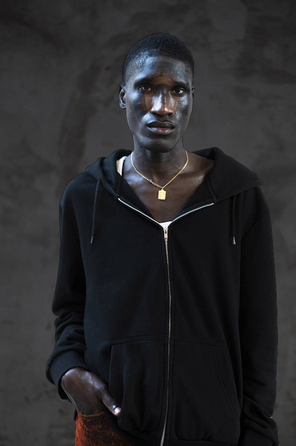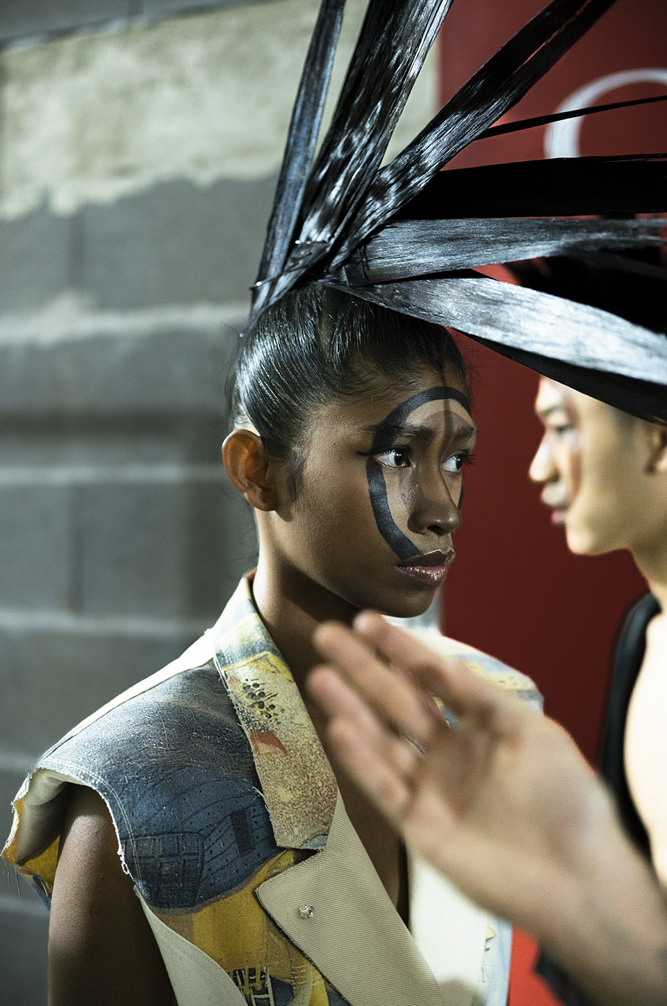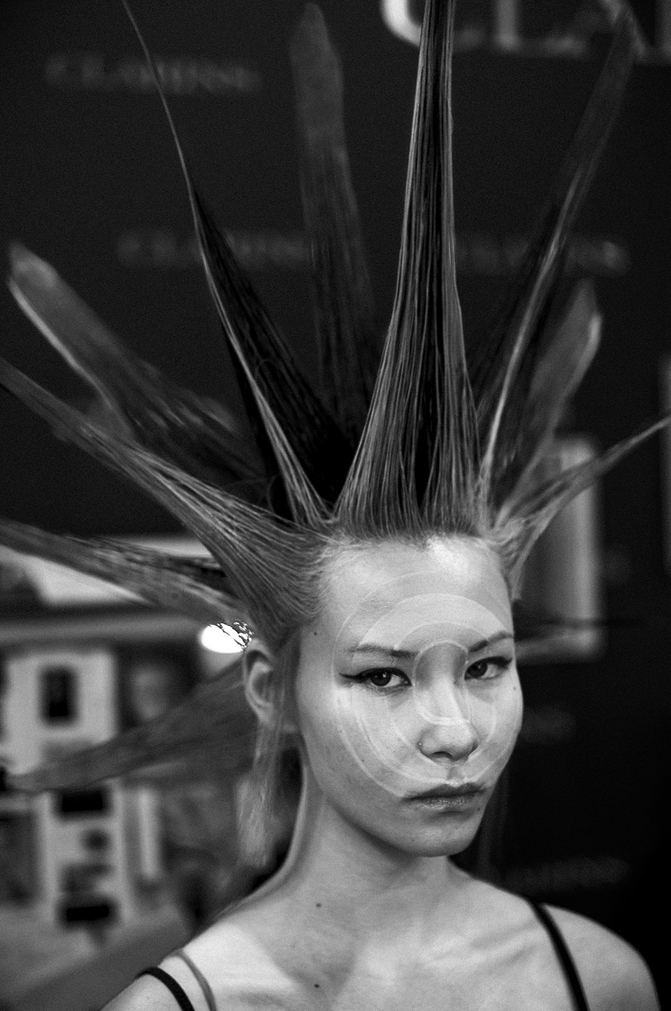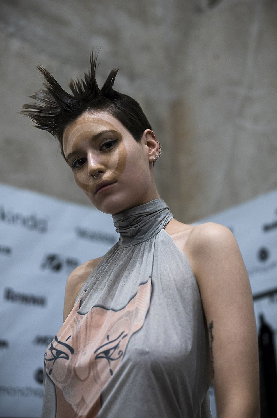 ANTONIA ROSA: Lidija wanted three-dimensional faces but subtly… without it being too obvious. This is why I created this optical illusion with the circles. I used skin coloured foundation in different tones from Clarins for the 3D effect.