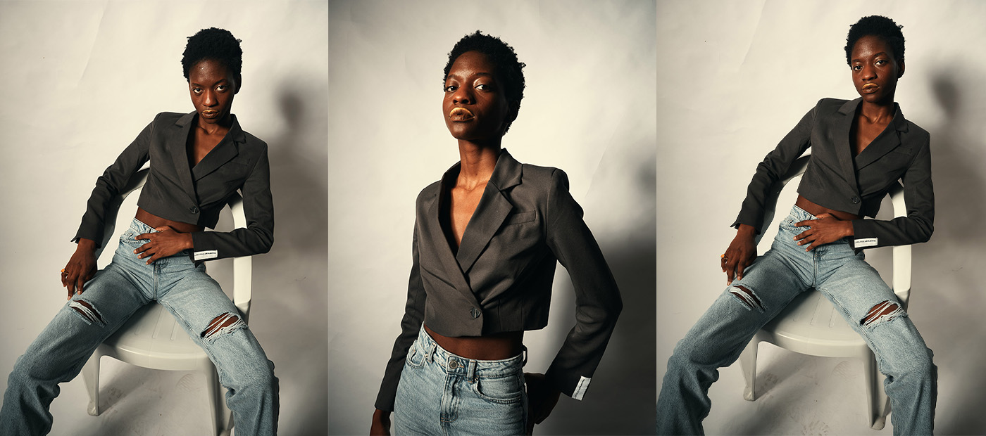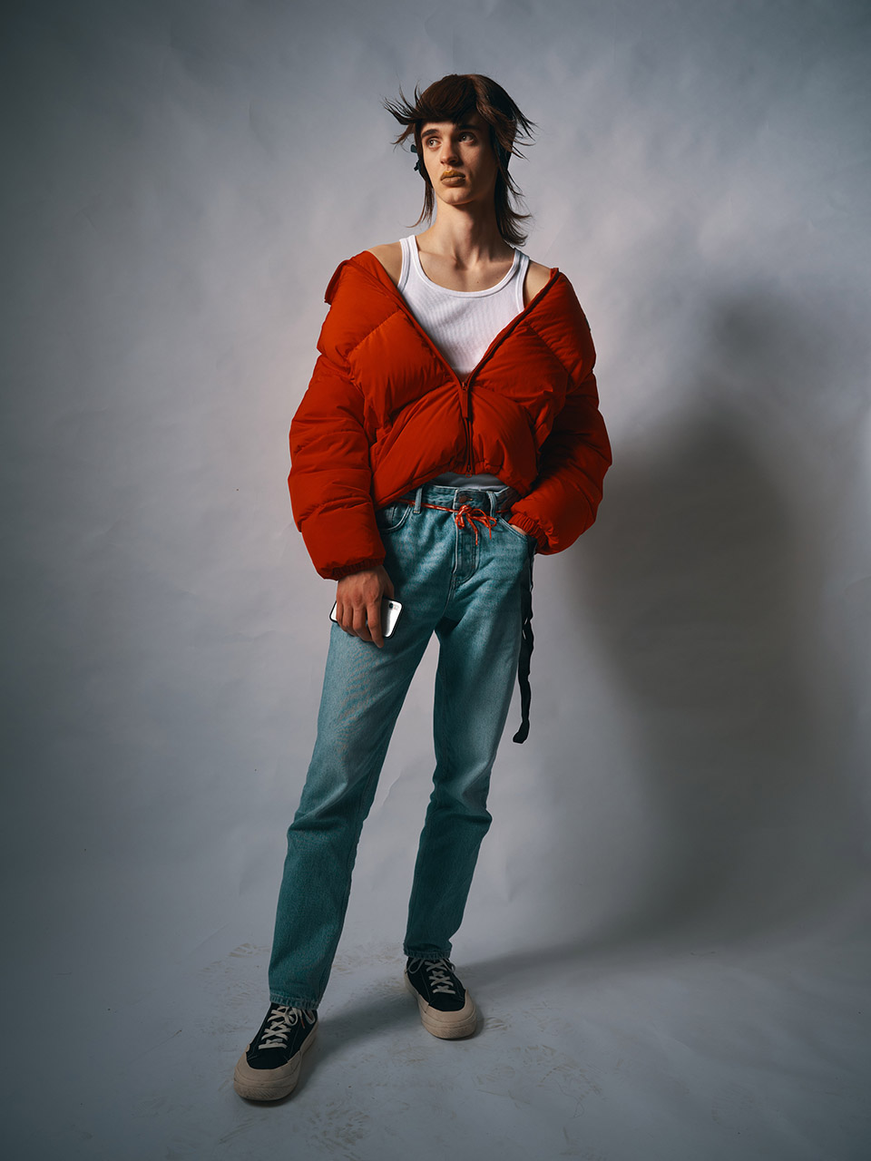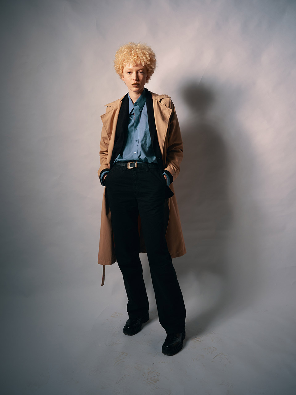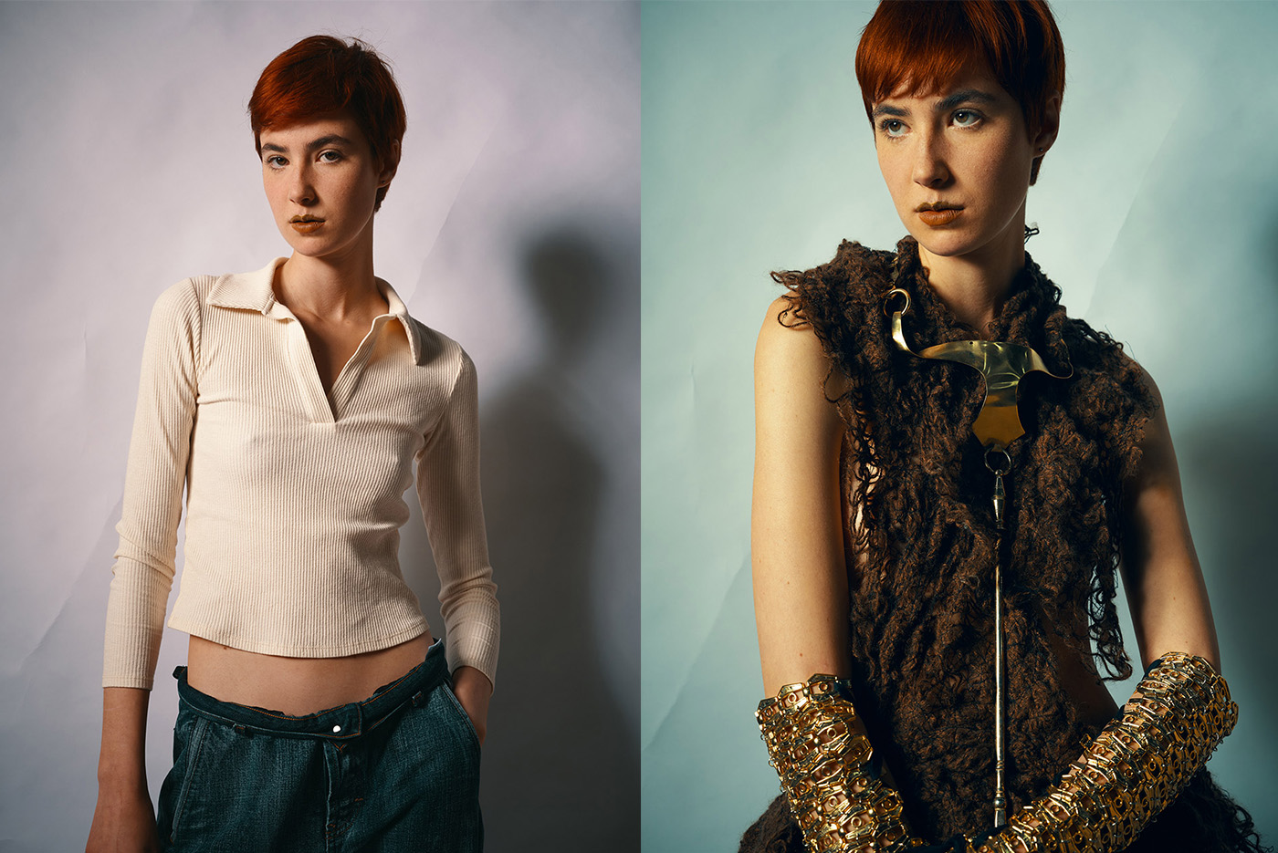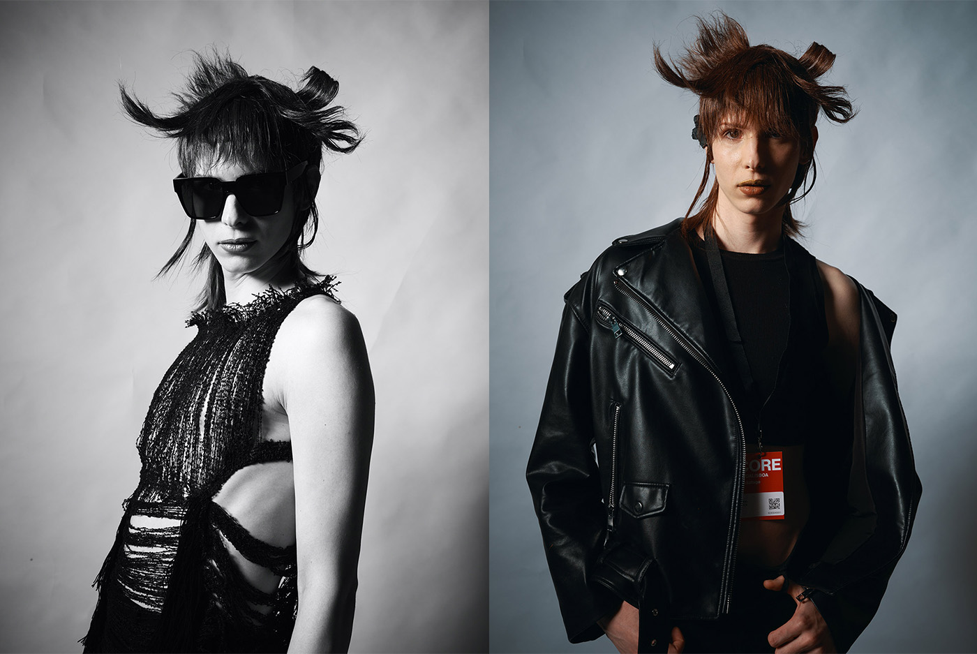 ZOOT presents an up-close view of Valentim’s AW23 collection through the lens of photographer Sergio Santos. Taken together, Sergio’s photos offer the narrative arc of the backstage, giving us an intimate portrait of the models in transition—documenting the process from walking in off the street, to walking out down the runway. The story begins by capturing the model’s individuality with their own personal style and story; building up as they begin their transformation through make-up by Antonia Rosa and hairstyling by Helena Vaz Pereira; finally, reaching the climax, with the complete look as the model embodies Valentim’s vision. Sergio encapsulates a deeper intensity, singularly focused on the physical beauty of the scene: filtering out the cacophony and zeroing in on the person becoming the model and inhabiting the clothes.