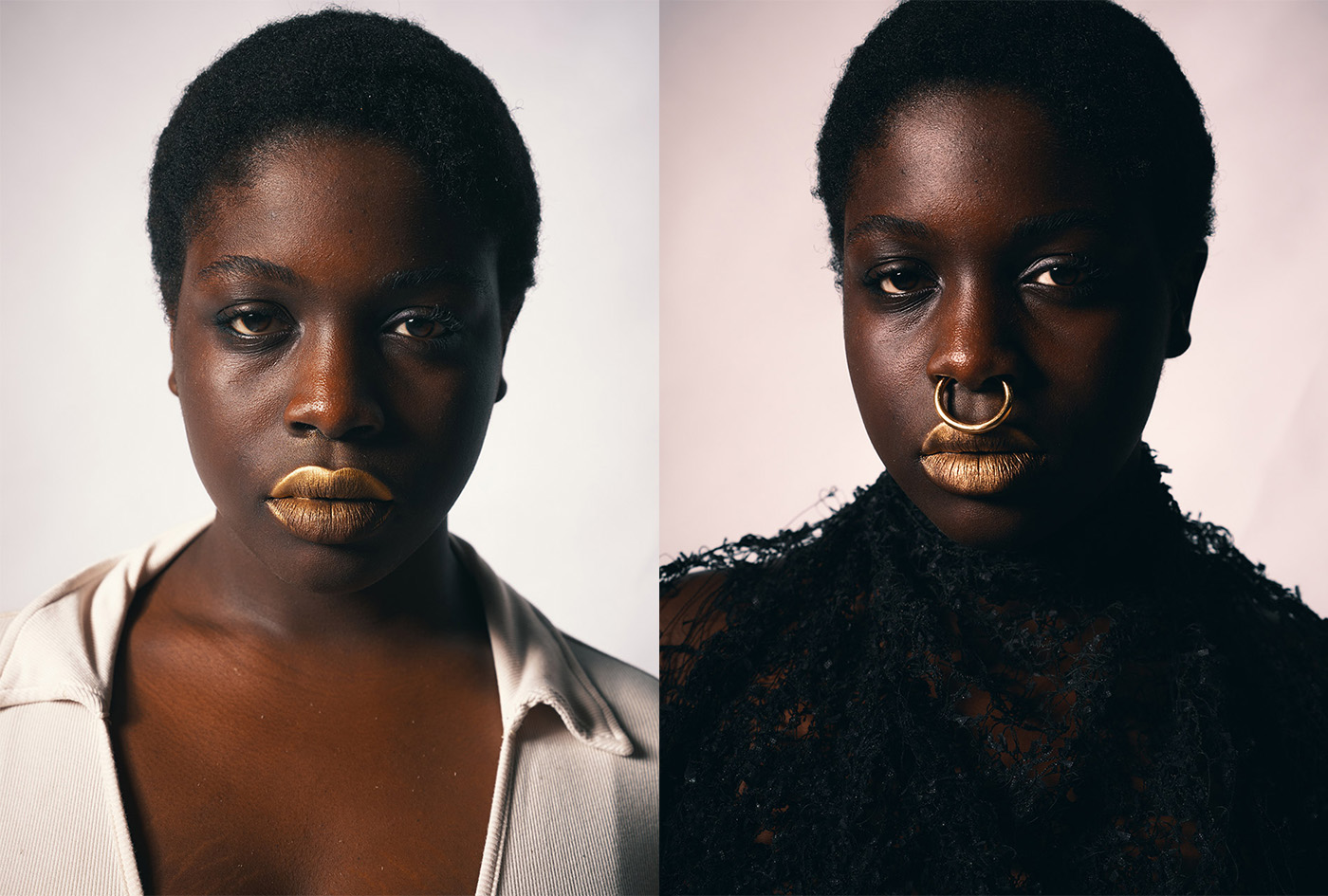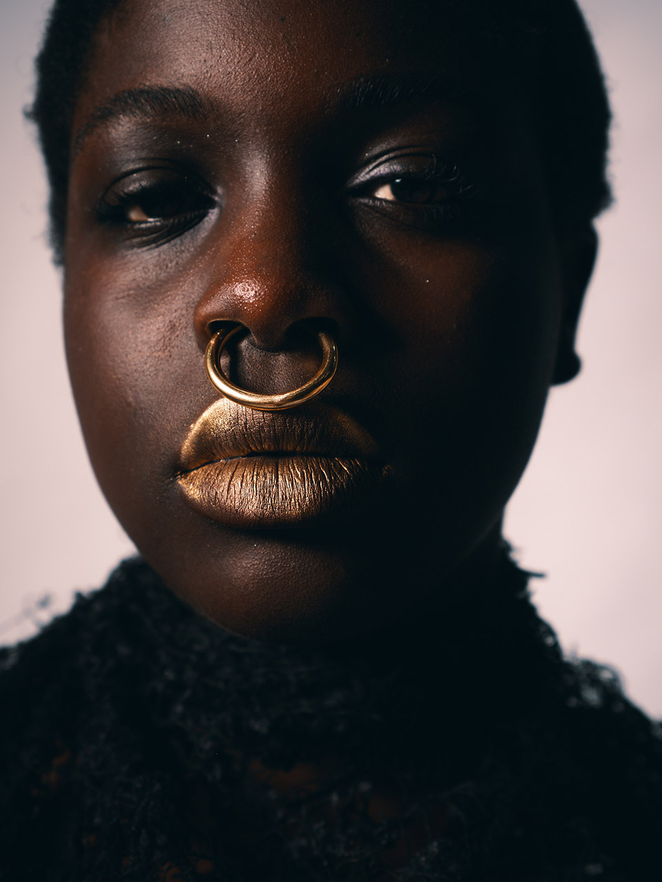 After seeing how Valentim’s hair, jewellery, accessories and clothes would be, I thought of doing a detailed make-up, by just adding a golden touch to the upper lip.