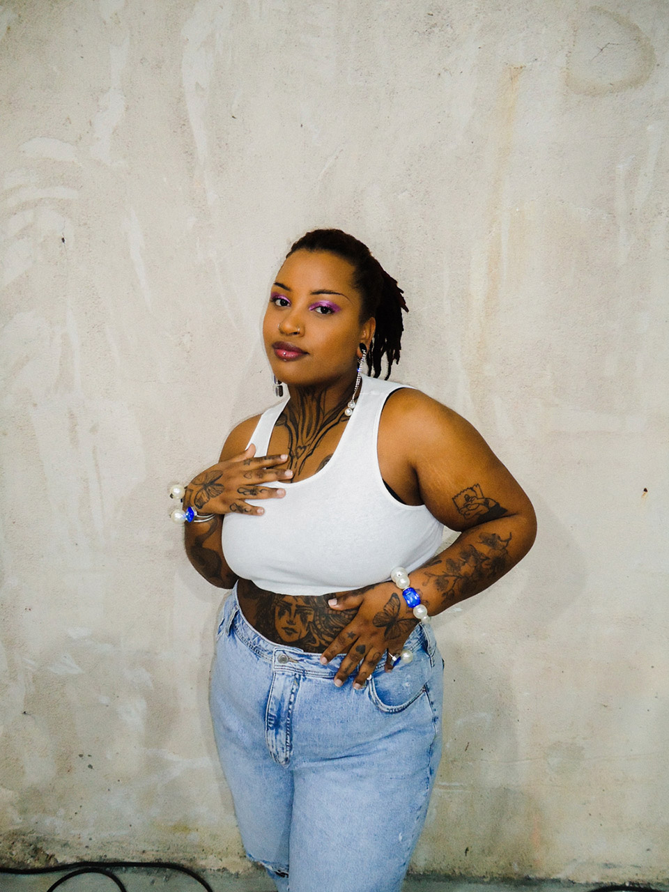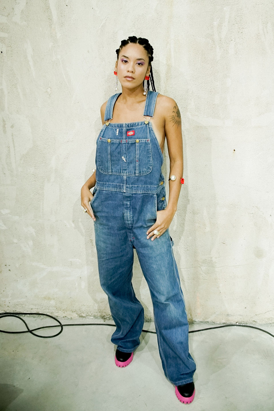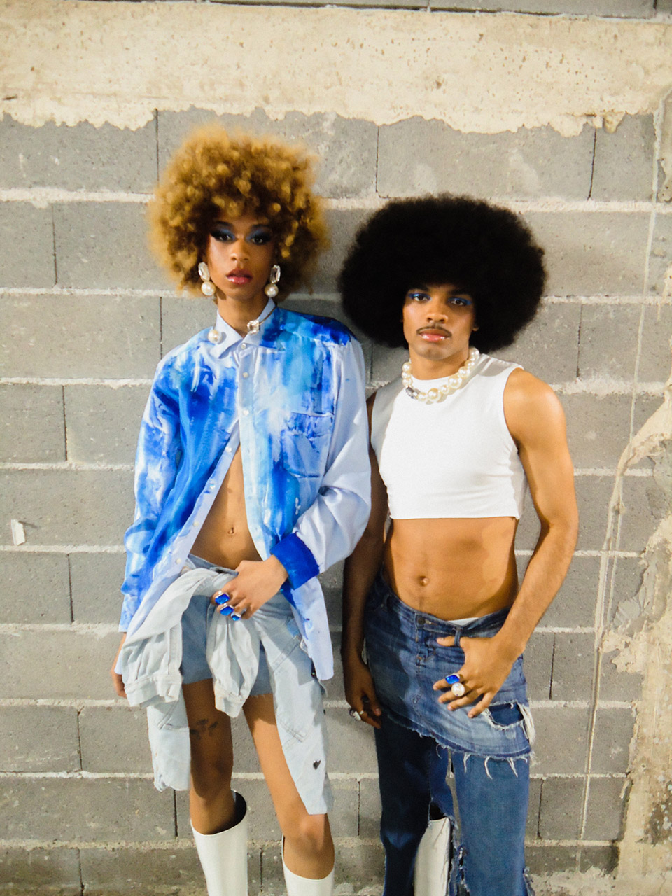 Joyfully gliding and spinning down the runway in her famous roller skates and Britney Spears-inspired blonde wig, street artist Eubrite set the tone for the Call Me Gorgeous FW23 collection. Following his past SS23 runway show that featured contemporary dancers taking over the catwalk to showcase his rhinestone-embellished jewelry, once again founder and creative director Luis Borges delivered an exciting show that even featured a performance