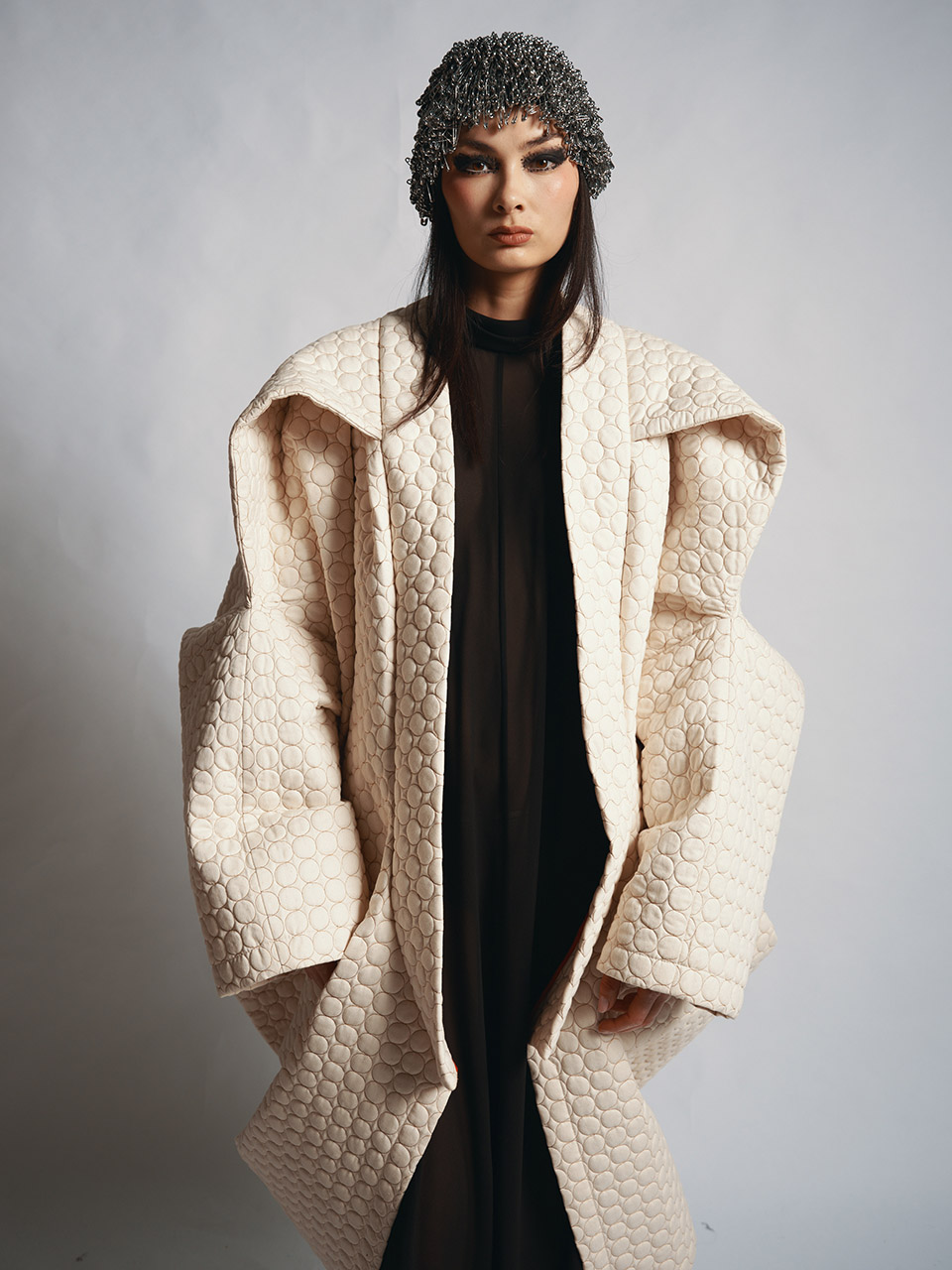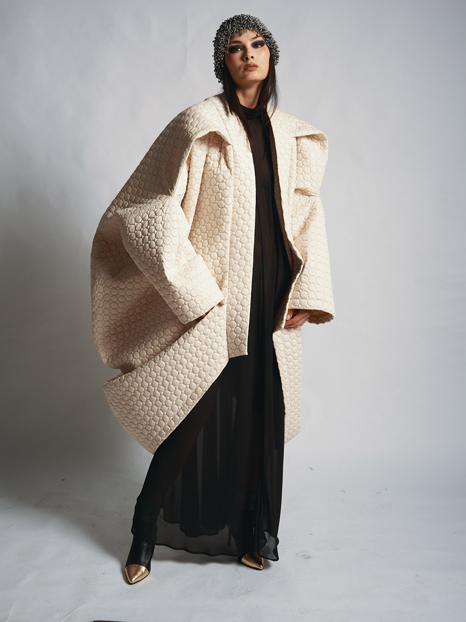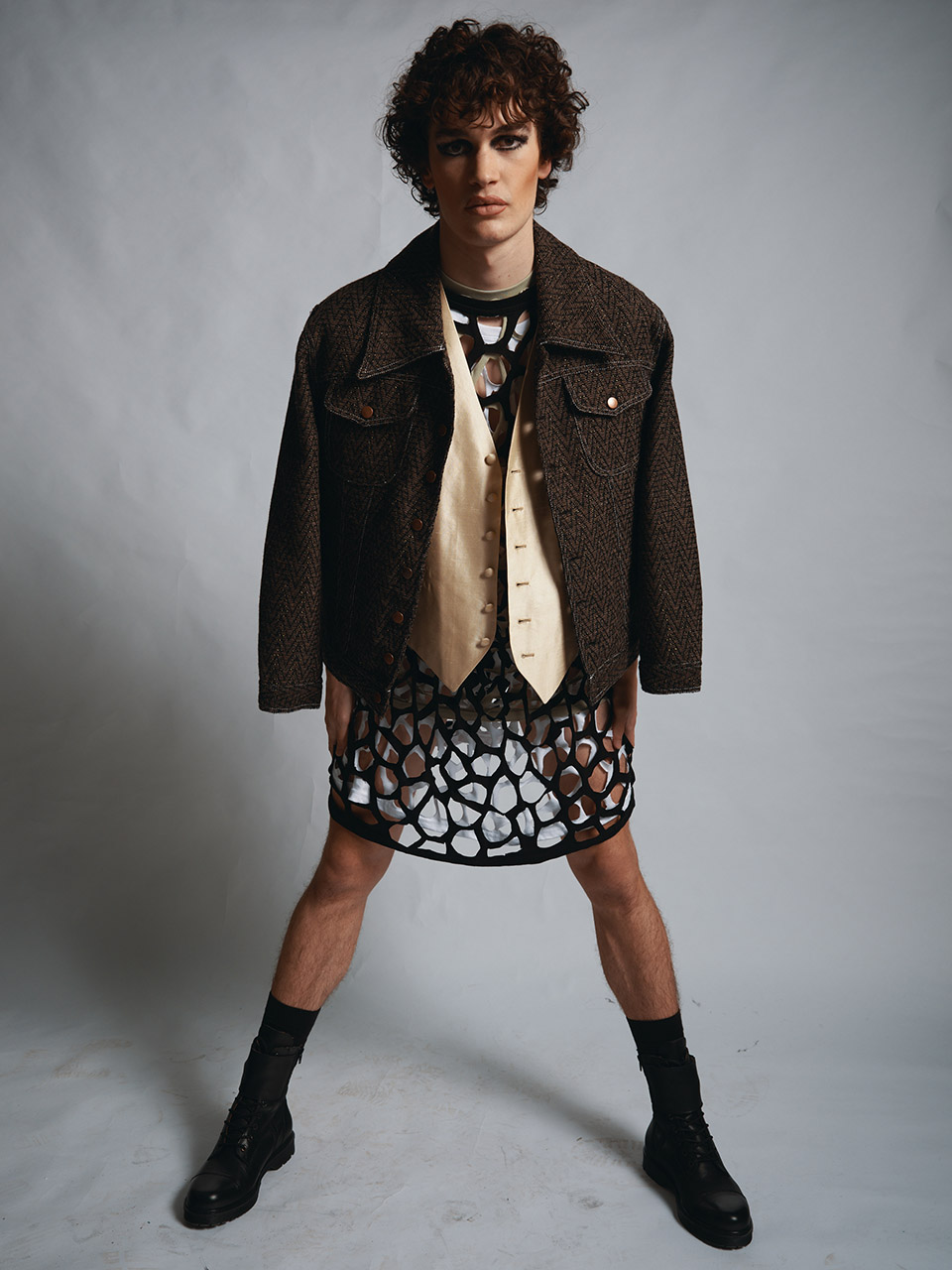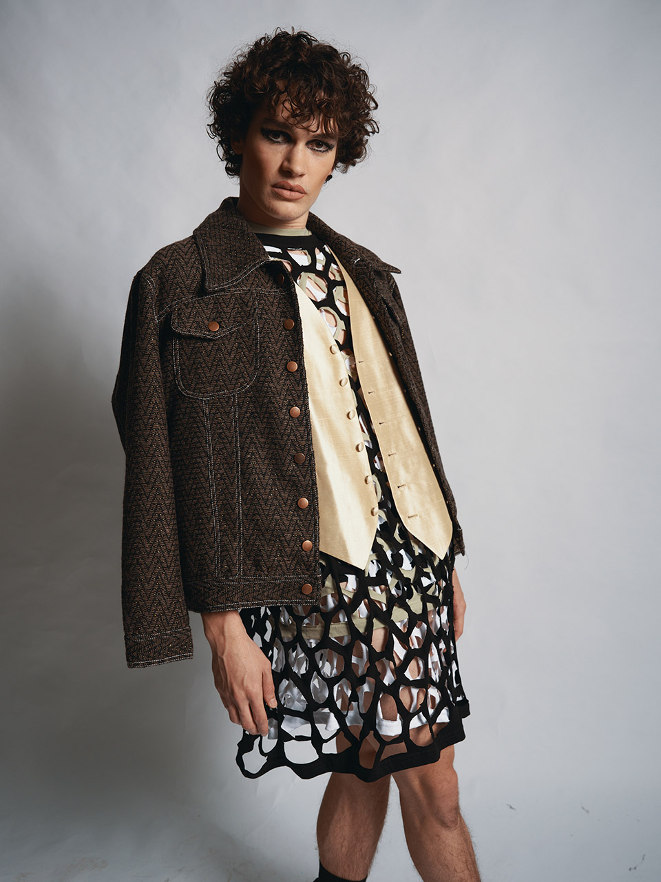 In this collection, Dino Alves speaks to the liberty to sculpt our external image while reminding us to safeguard the essence that lies beneath it all. This is the essence of TRANS—FORM, where fashion seamlessly intertwines with identity, and each piece narrates a story of metamorphosis.