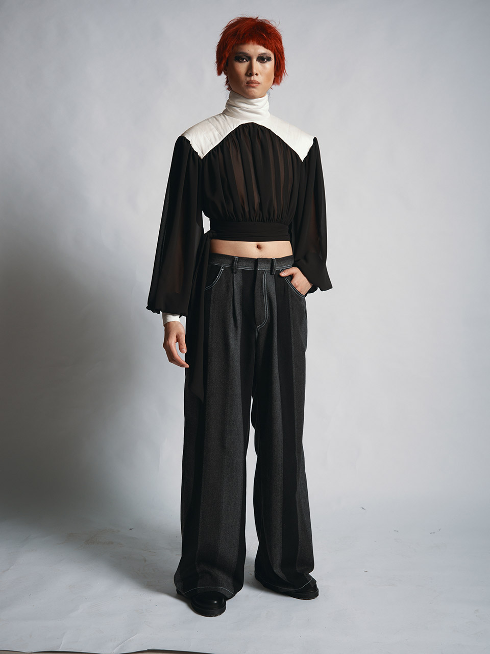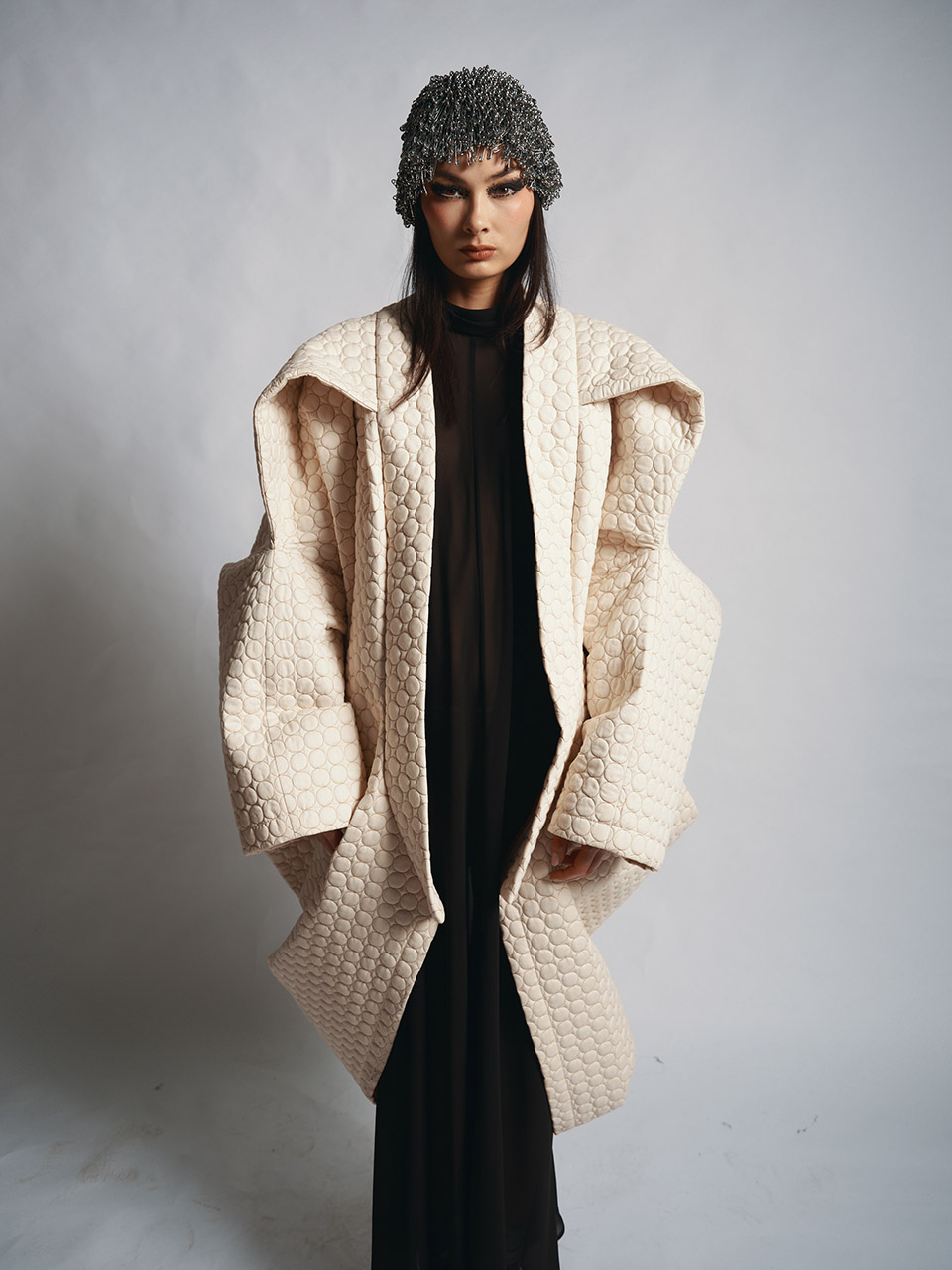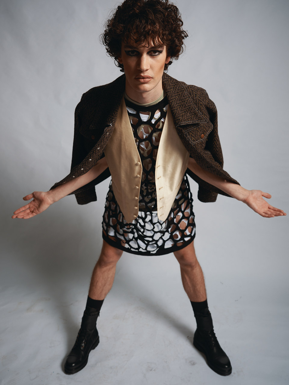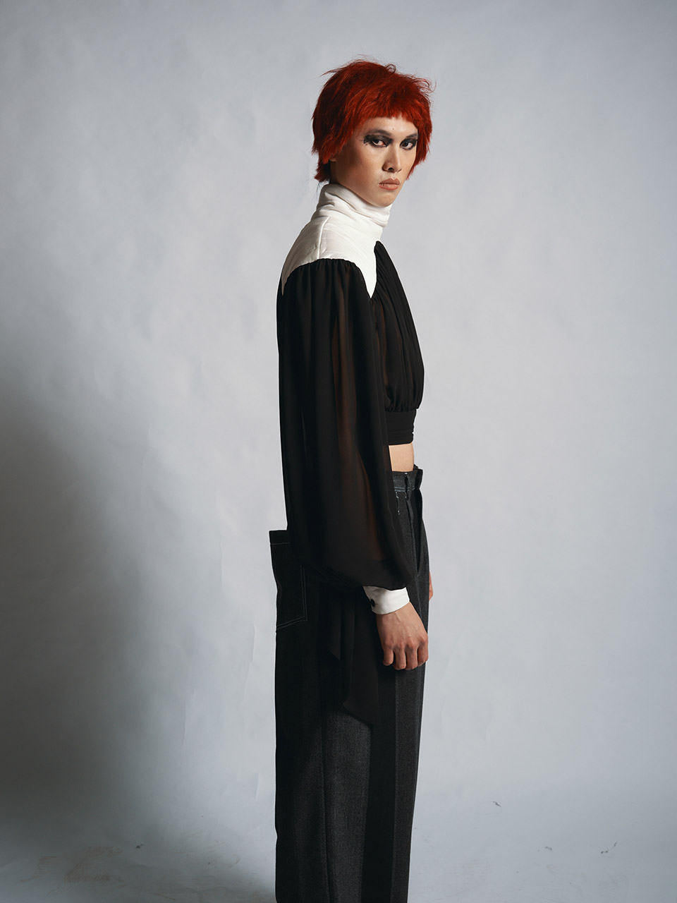 In this collection, Dino Alves speaks to the liberty to sculpt our external image while reminding us to safeguard the essence that lies beneath it all. This is the essence of TRANS—FORM, where fashion seamlessly intertwines with identity, and each piece narrates a story of metamorphosis.