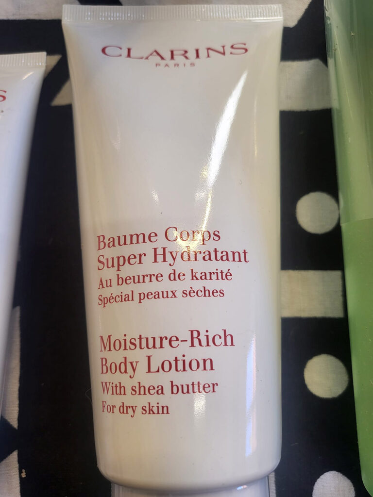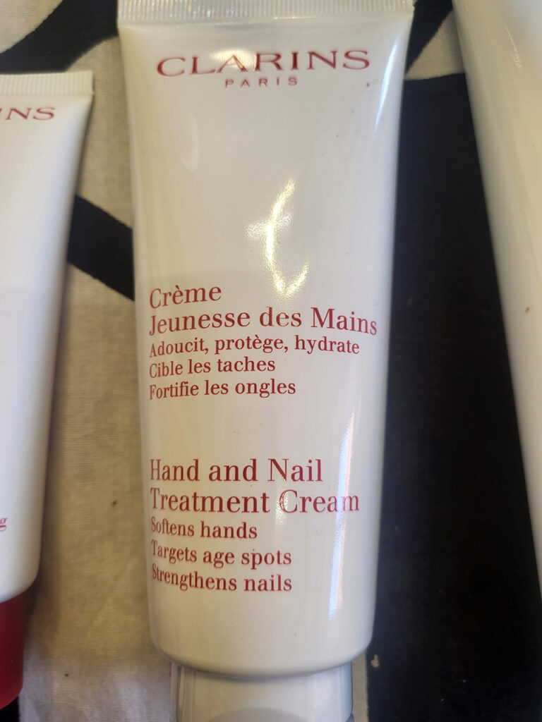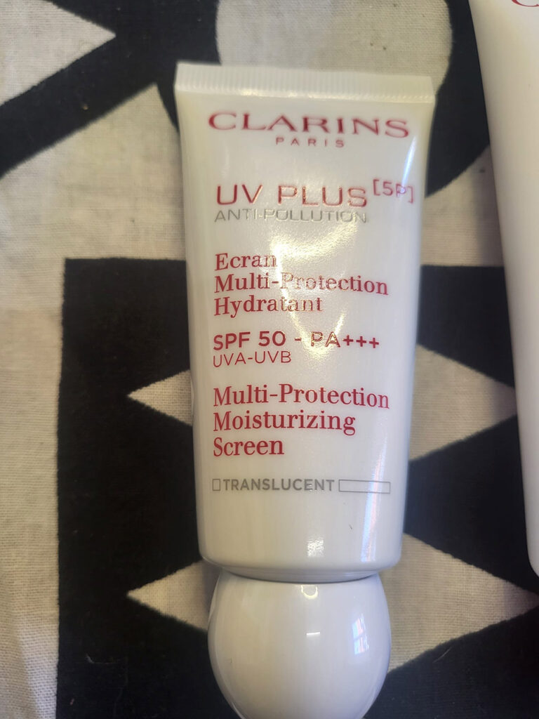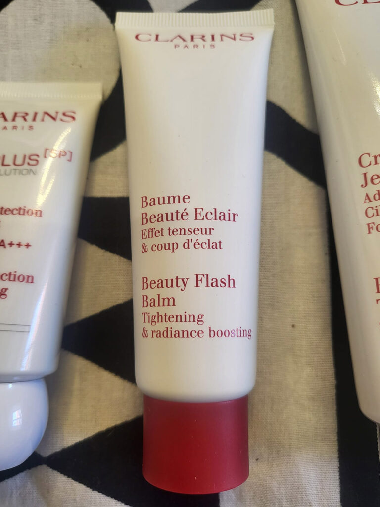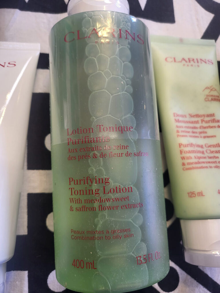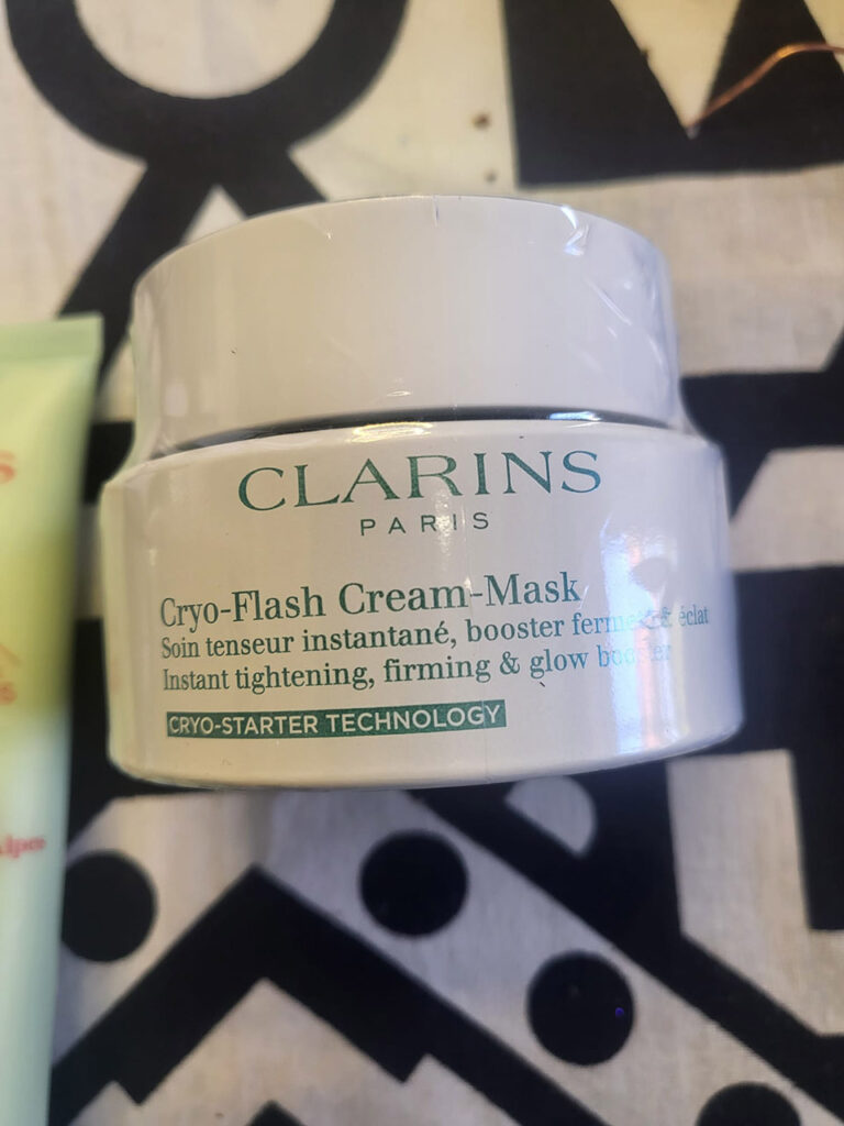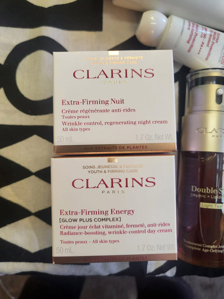 Clarins; Double serum, Multi-protection hydrant spa 50, toning lotion, cryo-flash mask (obsessed with this one) and total eye lift.