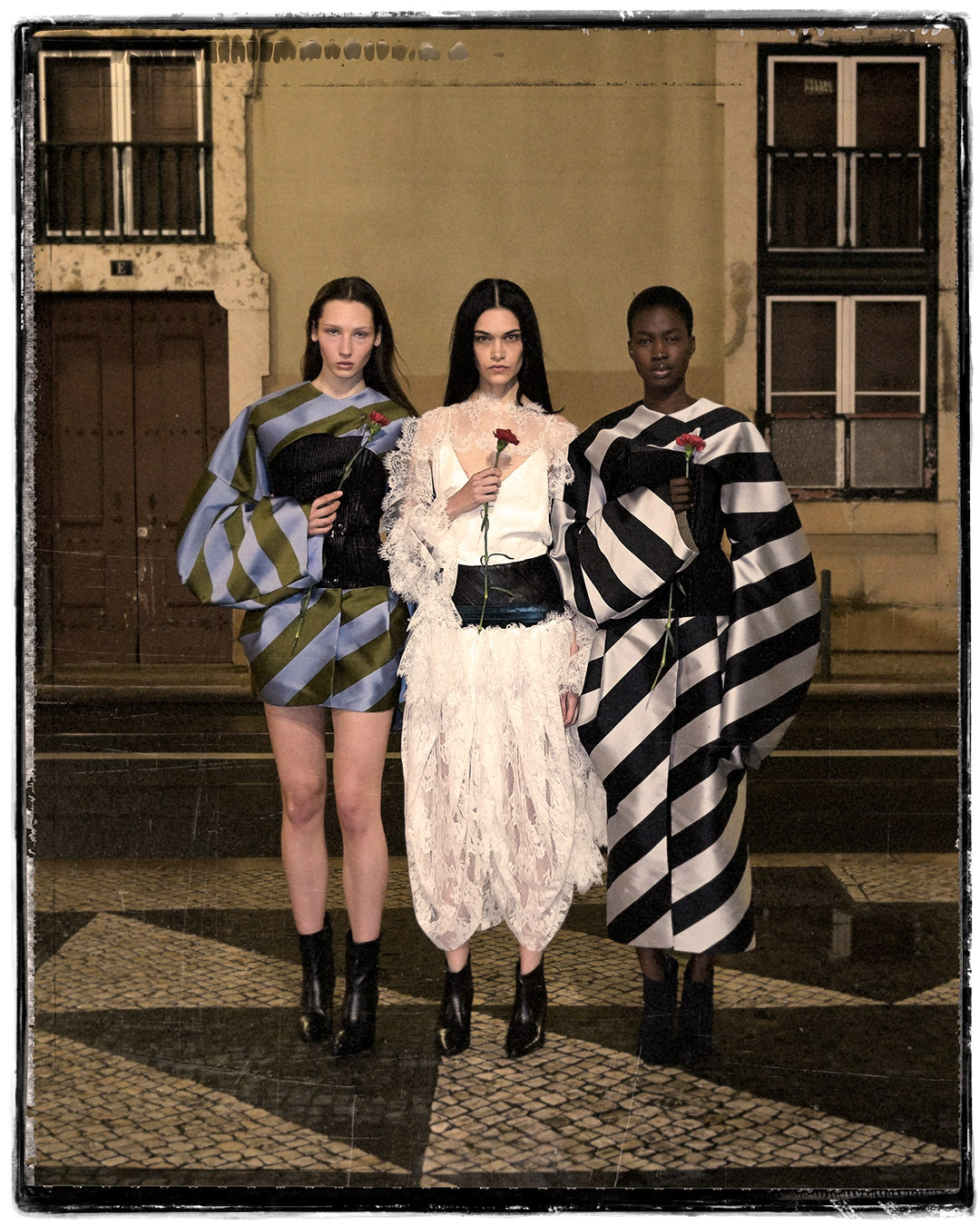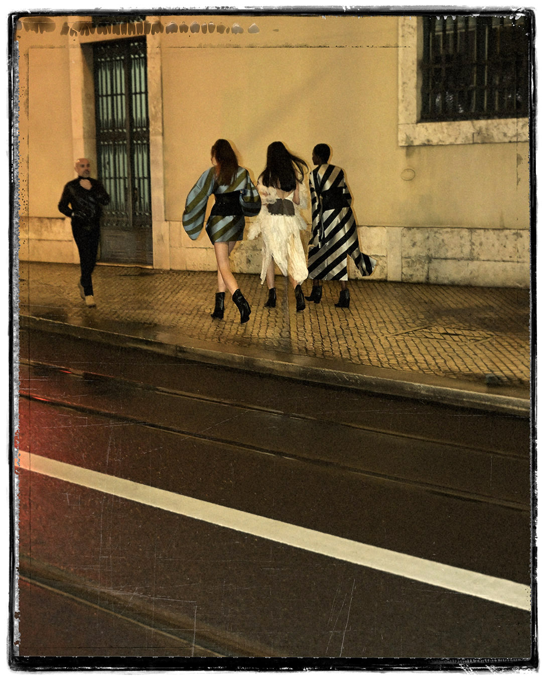 ModaLisboa For Good´s second day on Saturday 9th March had great shows and we were photographing looks from Buzina, Ricardo Andrez, Luis Buchinho and Goncalo Peixoto. Same as the day before we took our favourite models and looks directly after the show into the street, to Rua do Arsenal, the backstage entrance of ModaLisboa. The energy of the models after the catwalks is special, very intense, exhausted but focused. A special thanks goes to all the models and agencies we worked with.