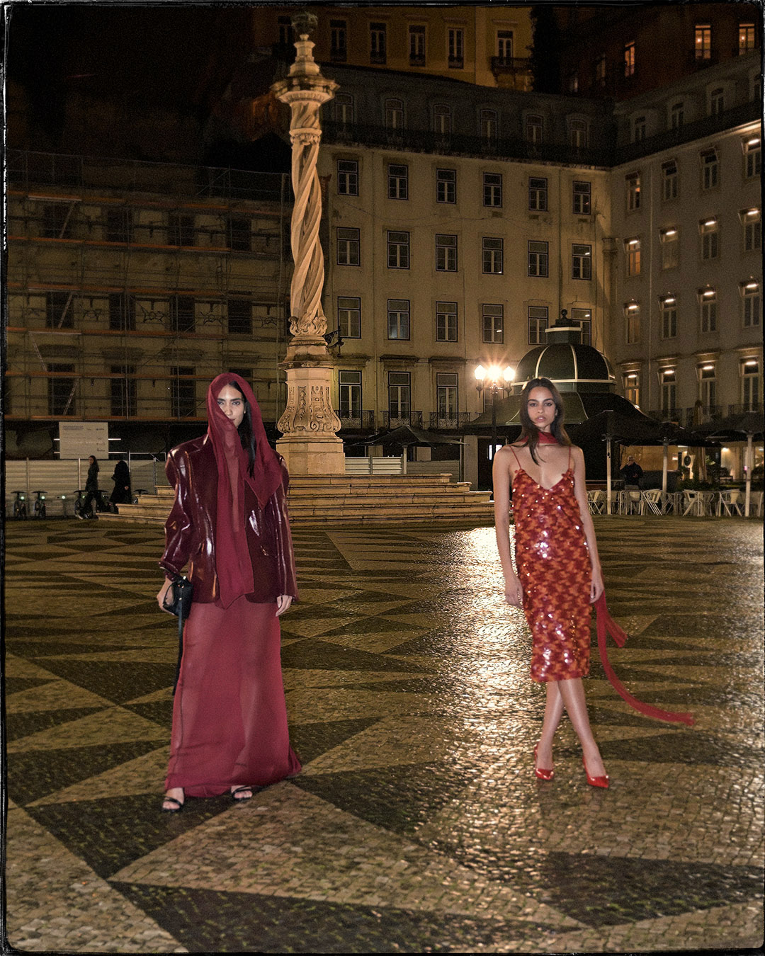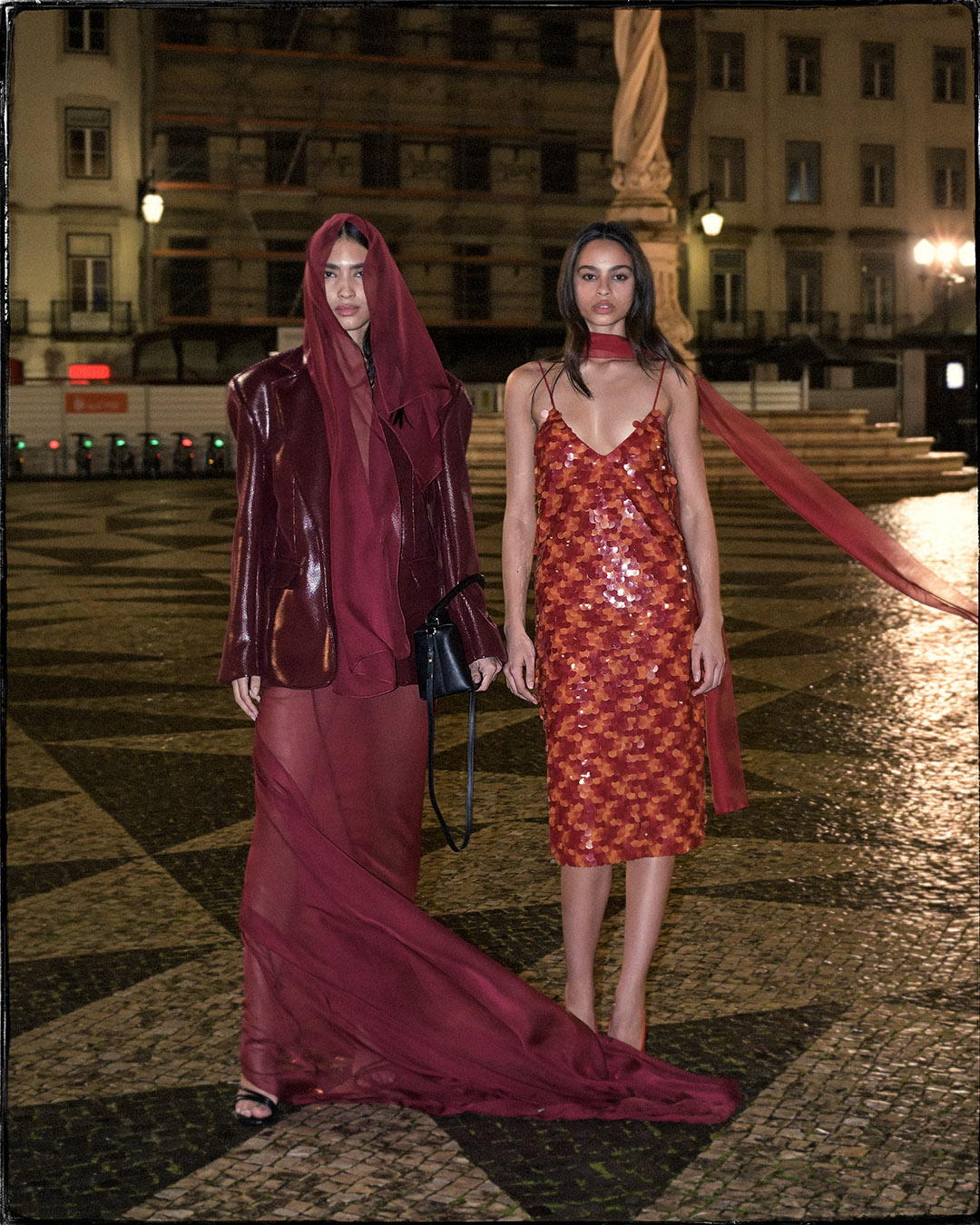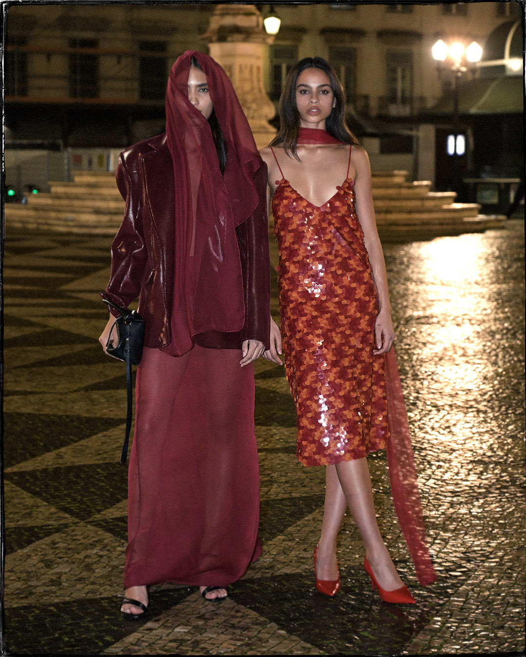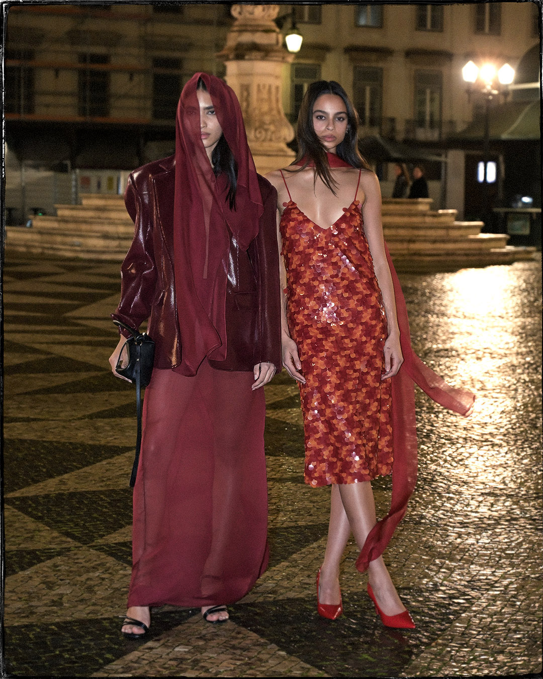 Beatriz and Raquel for GONÇALO PEIXOTO in shades of red.