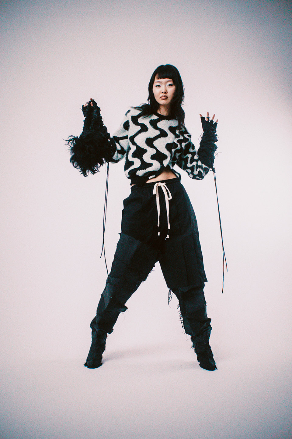 Antje Pugnat: My fascination with knitting stems from its absolute freedom. I start with nothing and create in three dimensions. My visual language explores sculptural forms with high attention to detail and craftsmanship. Each garment begins from nothing and evolves into a three-dimensional form, with my knitting techniques advancing from collection to collection and piece to piece.