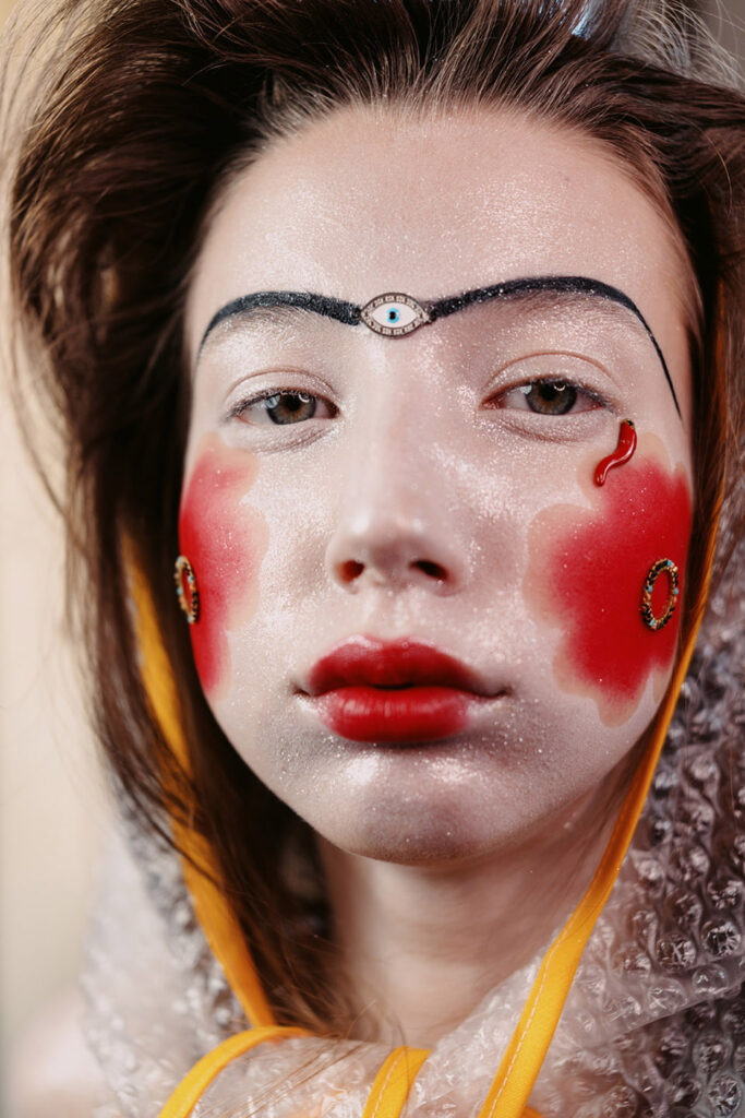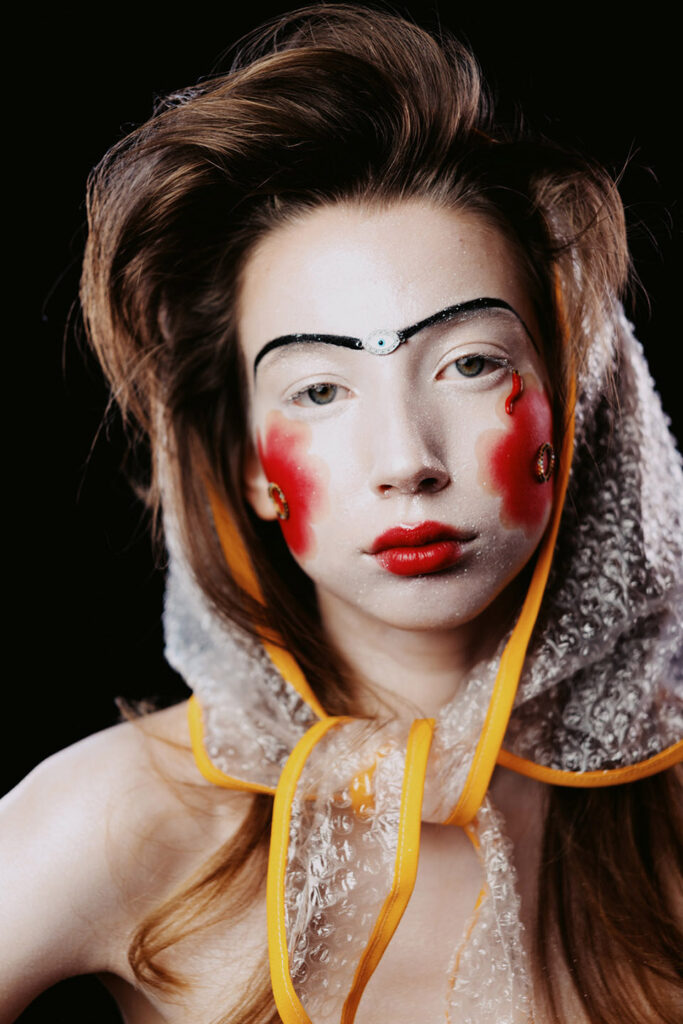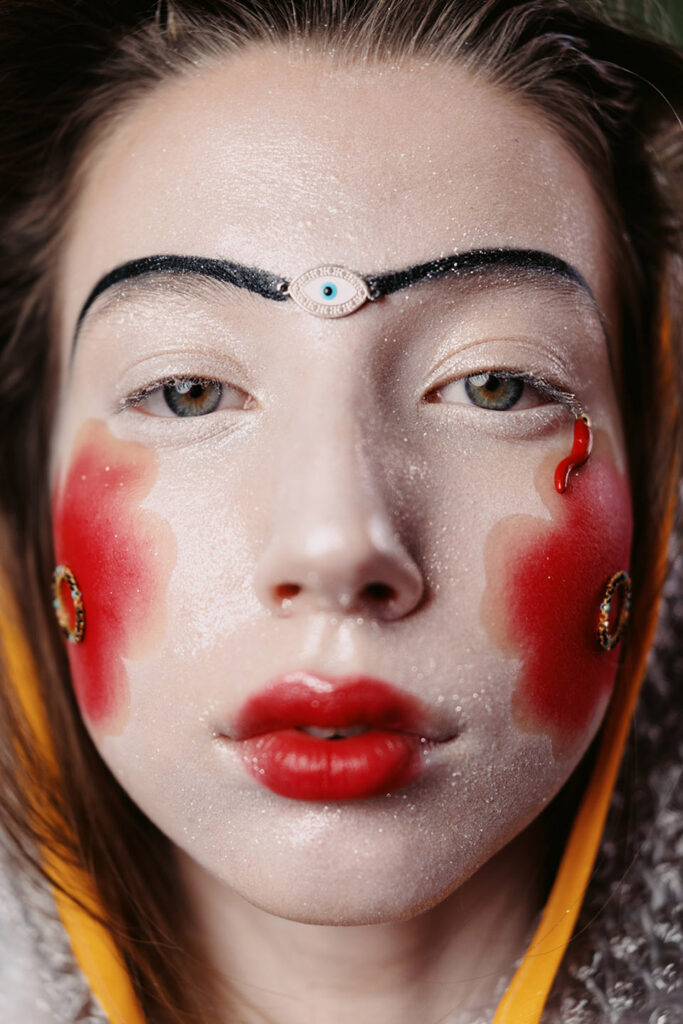 Our beauty editorial goes back to the rituals and beginnings of make-up. We draw inspiration from the famous plastered and painted ancient Greek head of Mycenae from the Bronze Age, as well as centuries-old traditional bridal make-up from Bulgaria, Kosovo and Macedonia & ancient Chinese and Japanese traditional make-up.