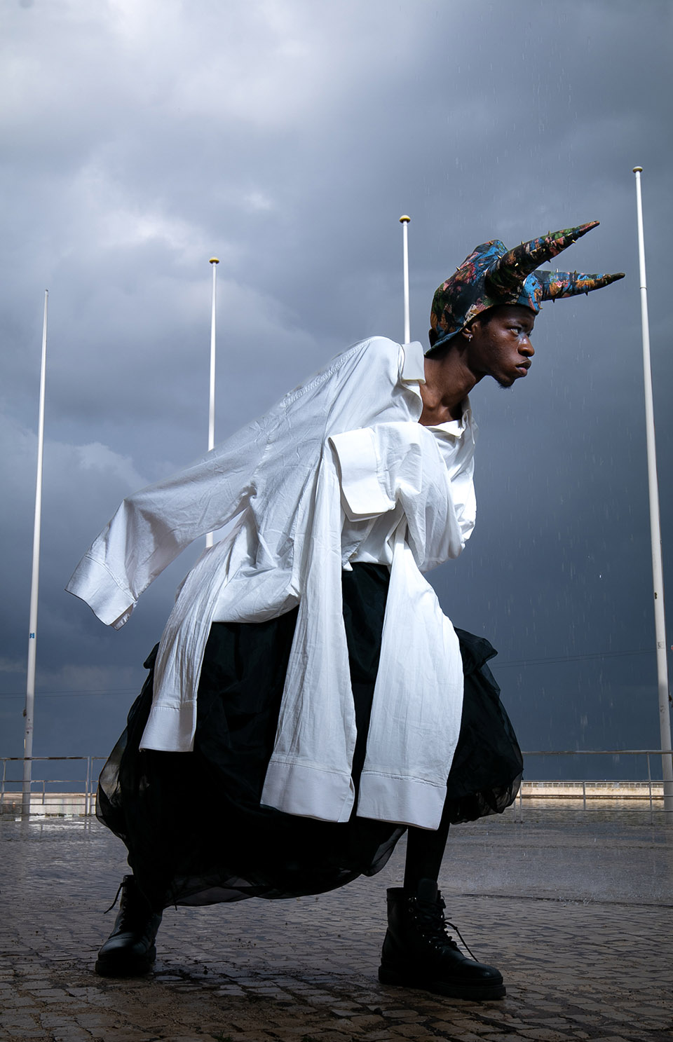 Martim Reis leads the creative direction, with stylist Marco Gomes giving form and texture to his vision. Together, they build a sequence of three states: the pressure that comes from the outside and forces us to perform, the one that rises from within and silently wears us down, and the illusion of freedom that, deep down, only delays the next wave of pressure.