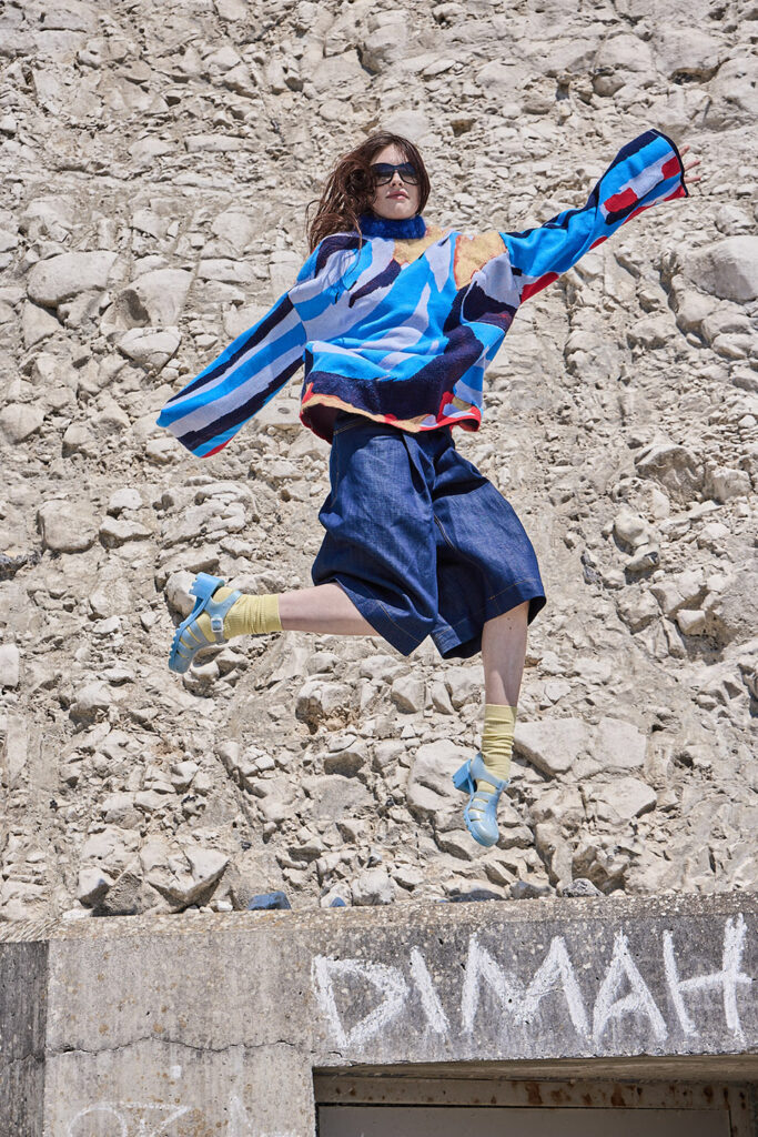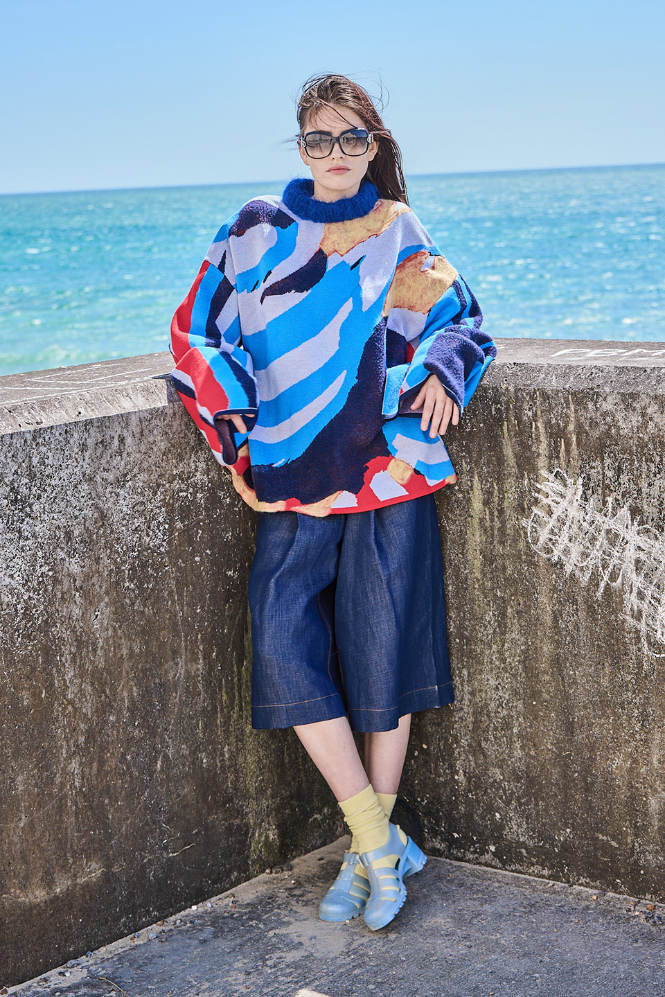 Denim, on the other hand, fascinates me with its structure and utilitarian history. It’s a fabric that holds memory and wears with time. There’s a certain polish to denim, particularly in its traditional techniques – like felled seams – that create garments that are as beautiful inside as they are outside. I love the contrast and harmony between knit and denim – rigidity and softness, heritage and innovation, functionality and play.