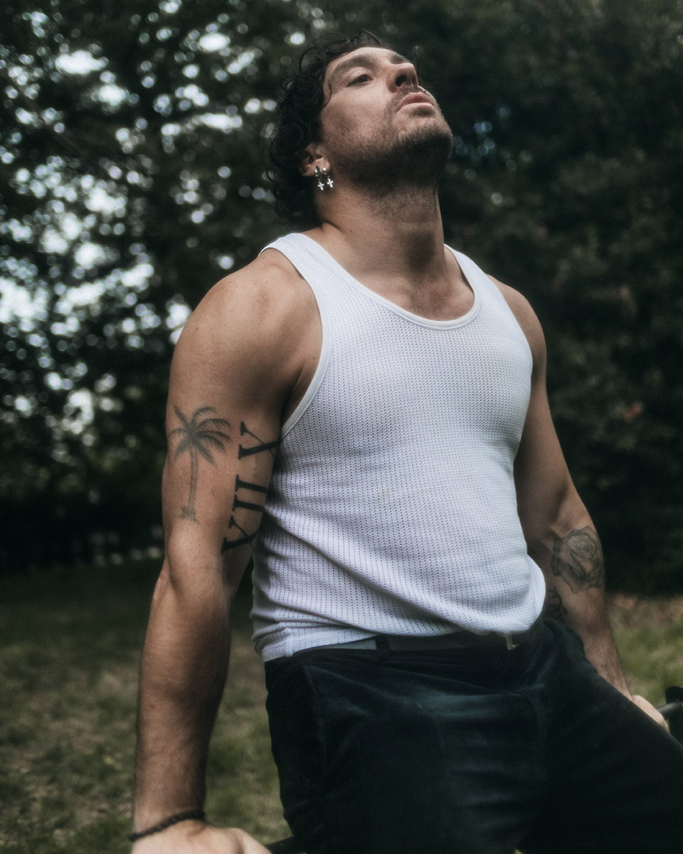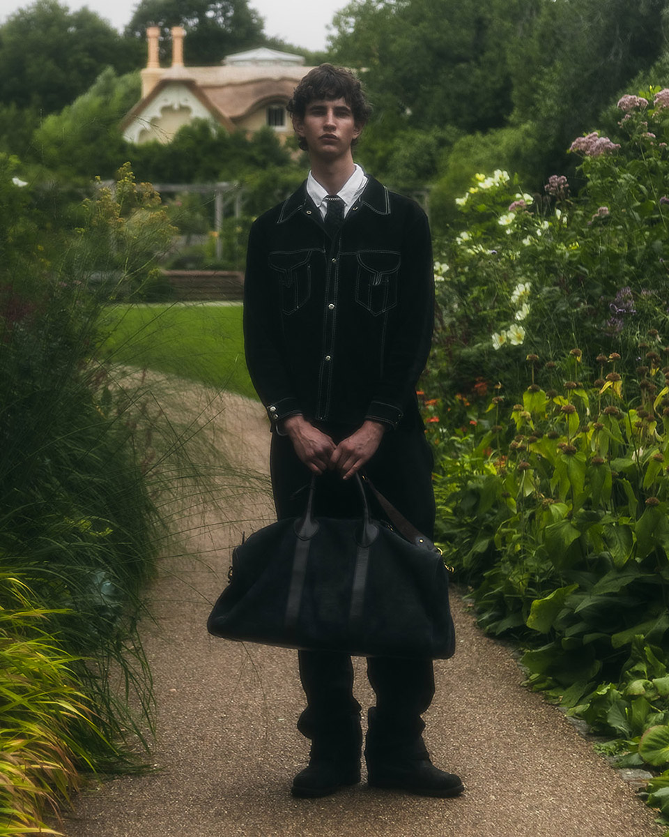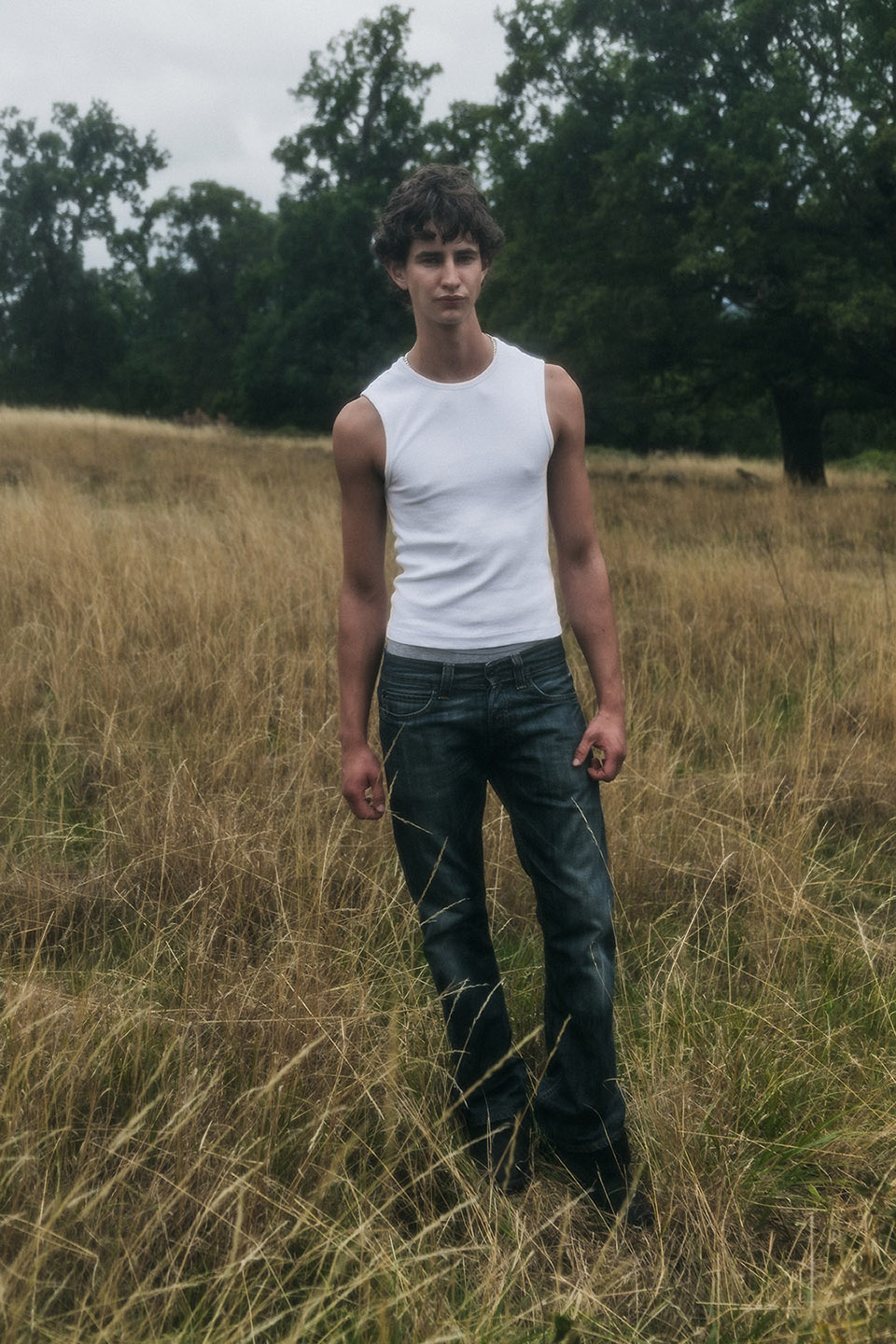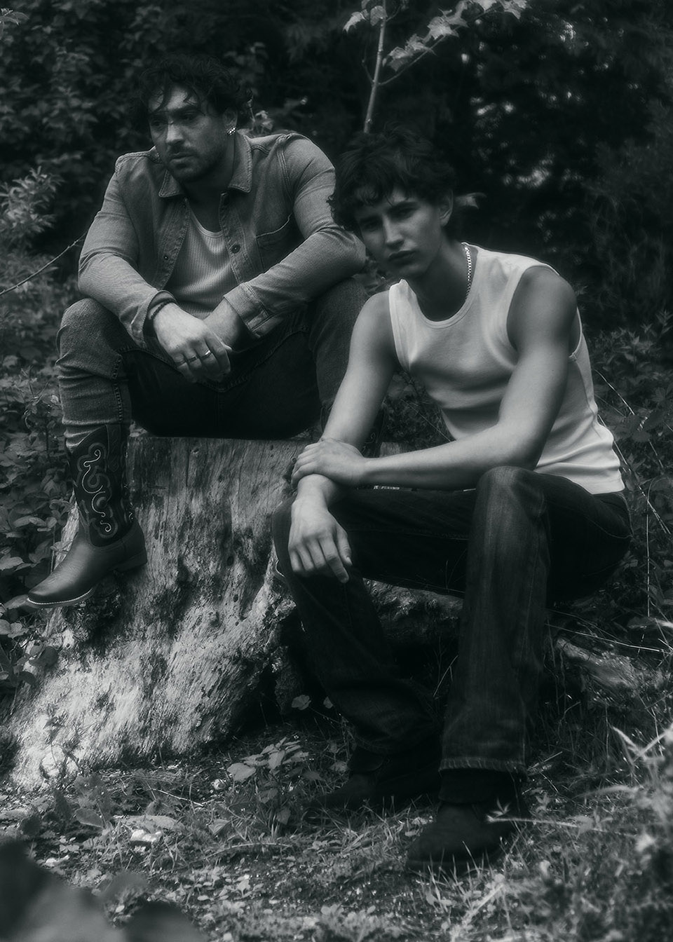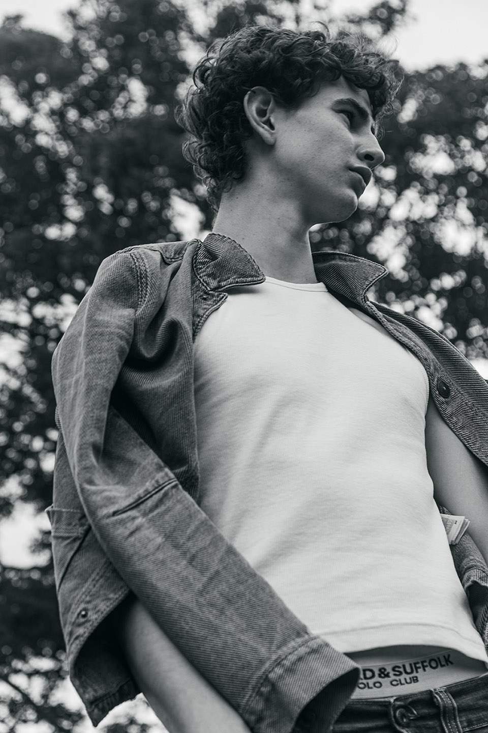 Oscar and Deano come from different points on the modeling journey — one just starting out, the other with years of experience as an actor, stuntman between London and Hollywood, and martial arts fighter — but for this shoot in Richmond Park, they met on equal ground. Styling themselves, they drew on personal references: cowboy fantasies, vintage textures, sharp tailoring, clothes chosen to feel lived-in yet expressive. Against the park’s backdrop — part Victorian formality, part open wilderness — their choices became part of the story.