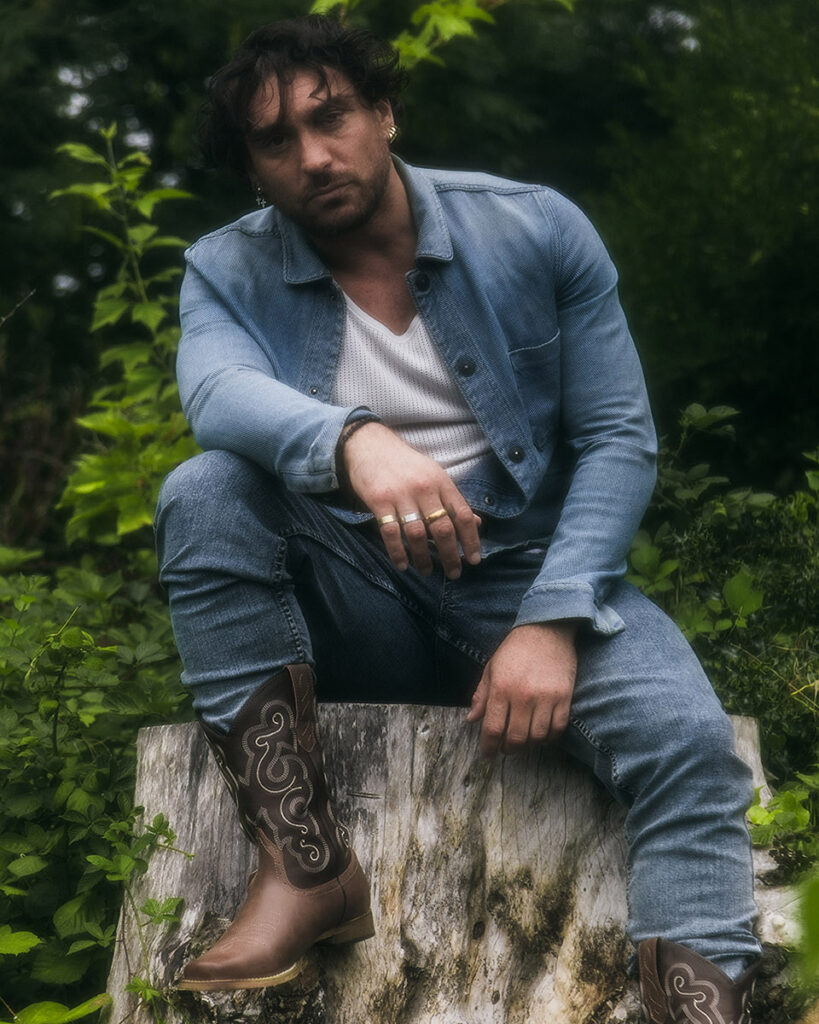 My personal style is pretty broad, but for this shoot, I wanted to showcase two distinct aesthetics: Western American and traditional formal wear. My first outfit was a bit of a cowboy fantasy—think bootcut jeans, cowboy boots, and a vest. The other was an all-black suit. The real fun was in bridging these two looks, which led me to create a third outfit that was basically a Canadian tuxedo on steroids.