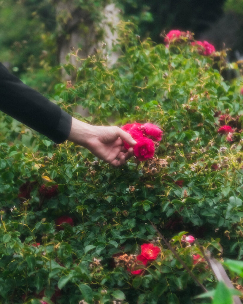 The shoot by Lauren moved between the enchanting rose garden at Pembroke Lodge and the park’s open fields, with the mood shifting in each location. Among the blossoms, their style felt bold and expansive; in the open fields, it turned intimate and reflective. Across both spaces, they engaged with the landscape—shaping, moving through, and responding to it—transforming Richmond Park into a canvas for personal expression.