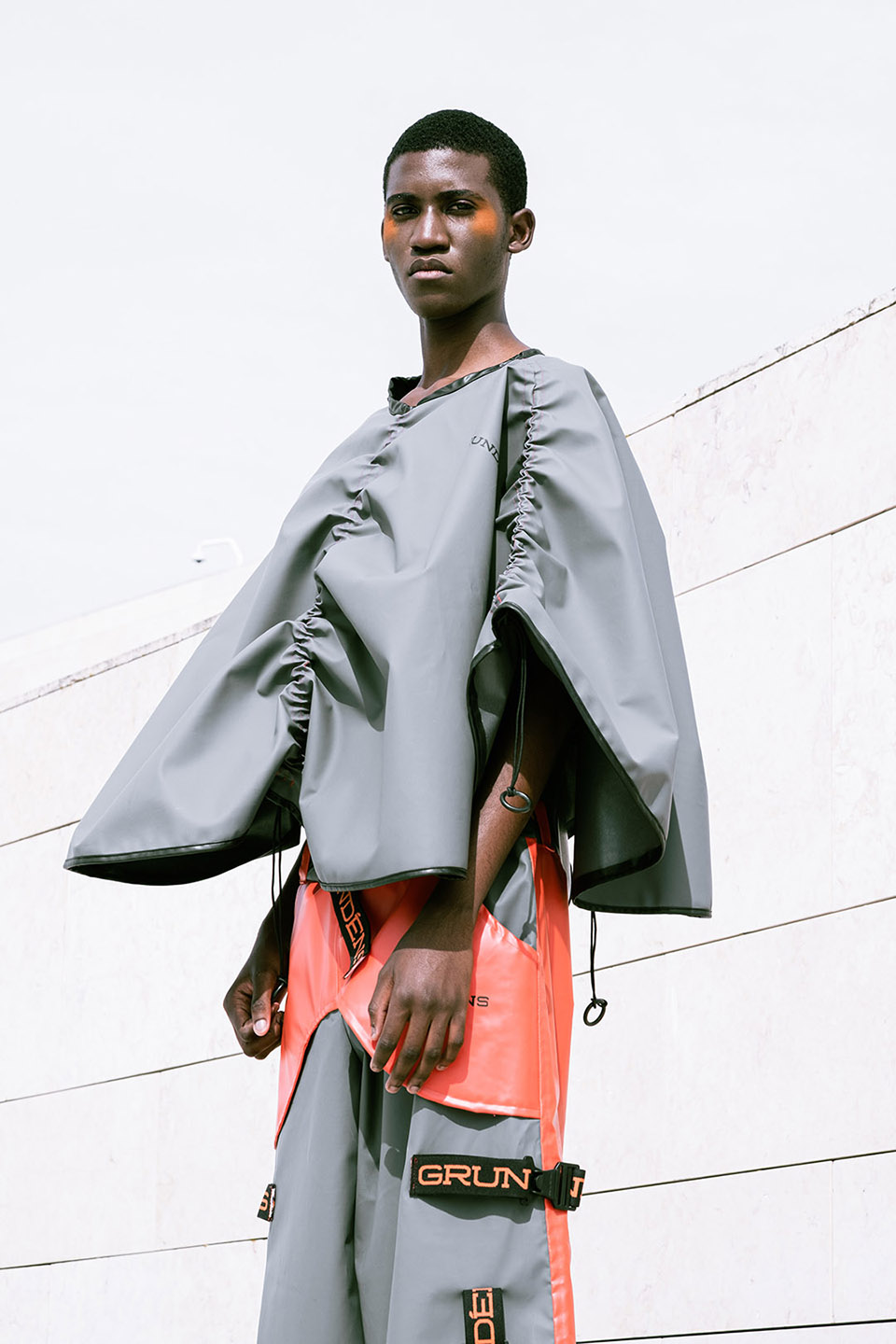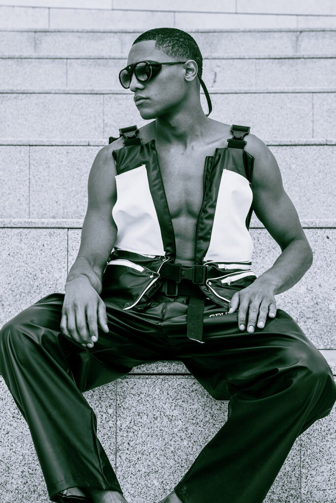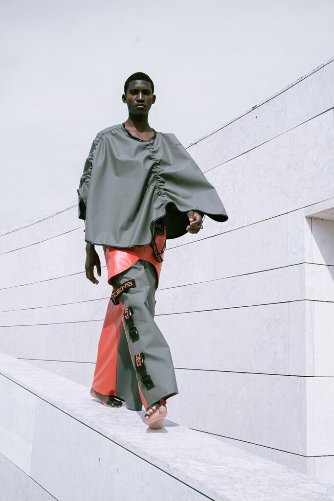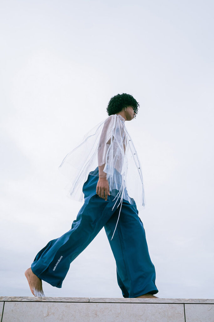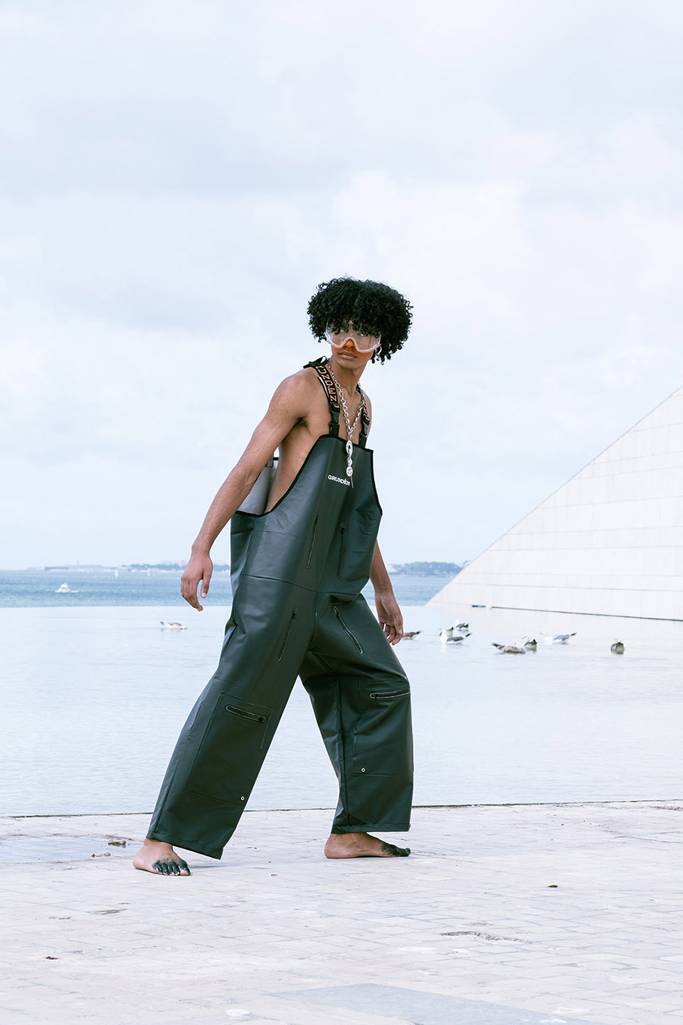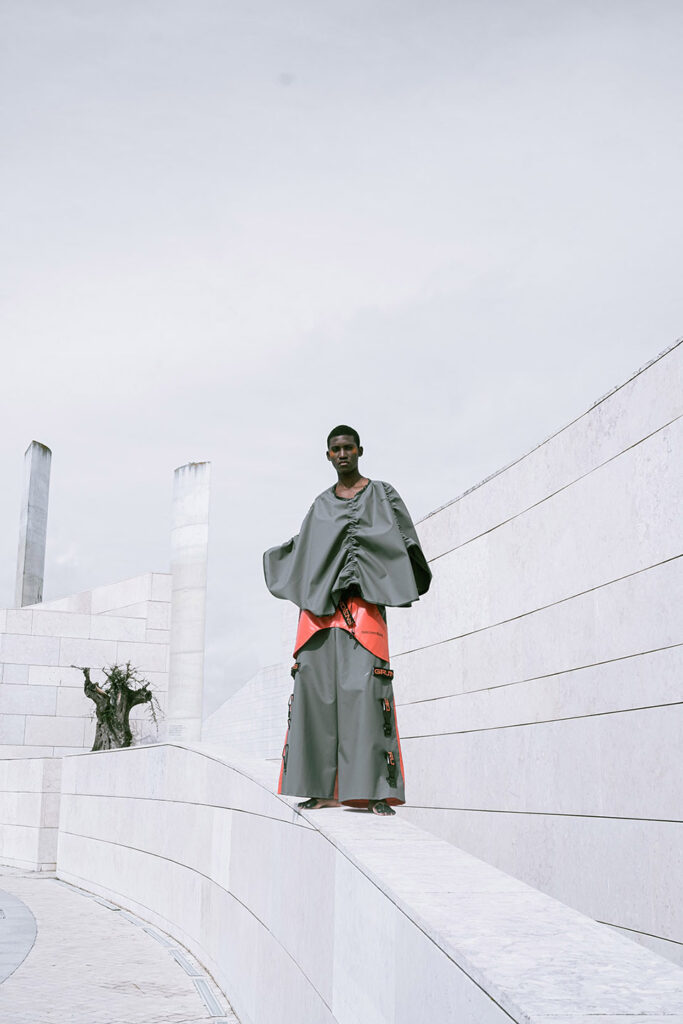 Shot on the riverside steps of the Champalimaud Foundation, ZOOT and ETIC joined forces to showcase a futuristic collection. ETIC’s final-year Fashion Design students using deadstock materials from the Swedish fishing-gear brand Grundéns, this capsule highlights the urgency of putting sustainable practices into action.
