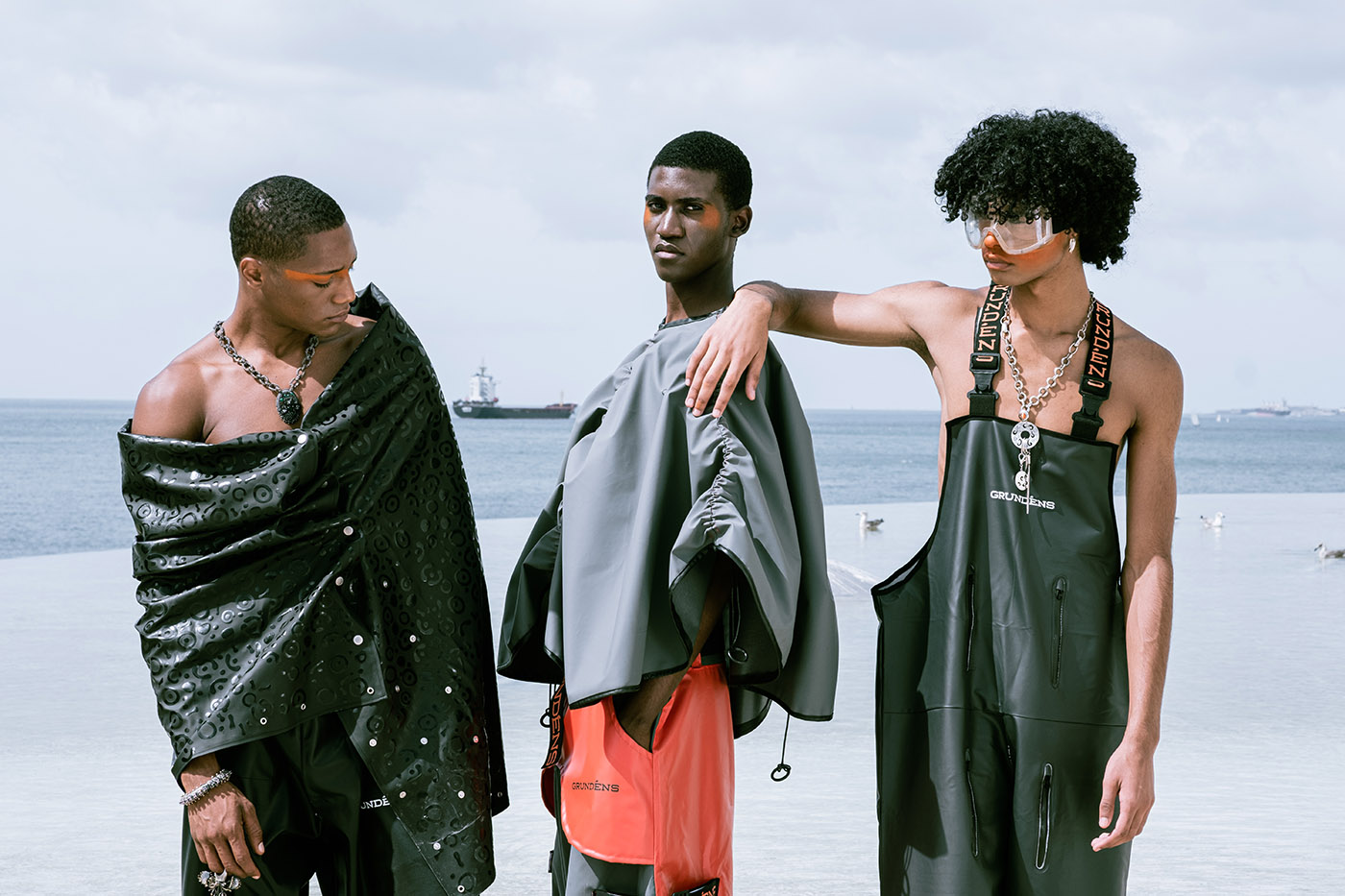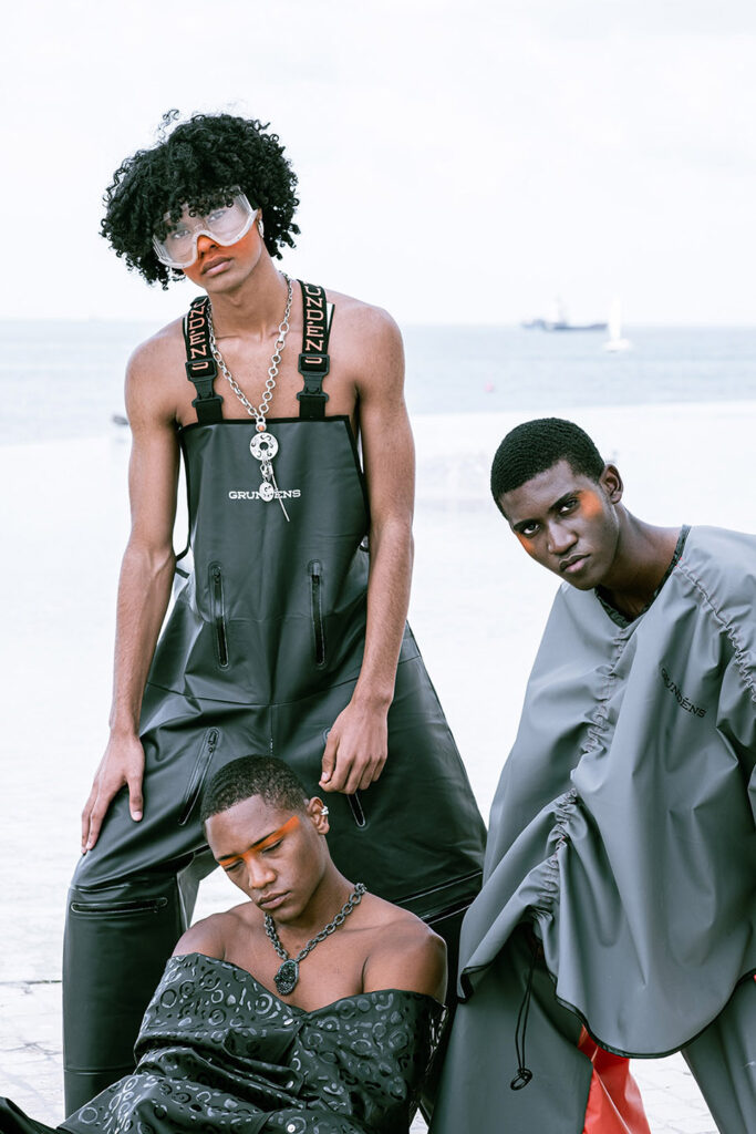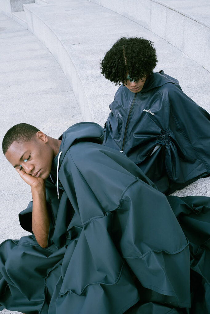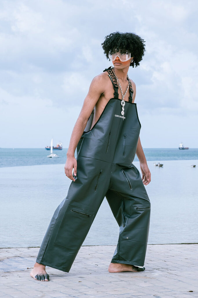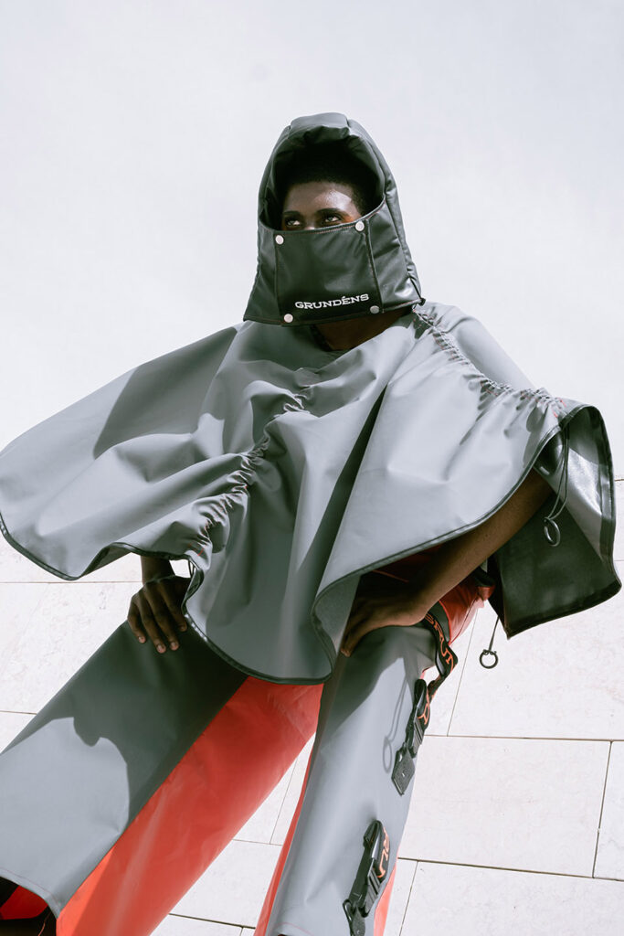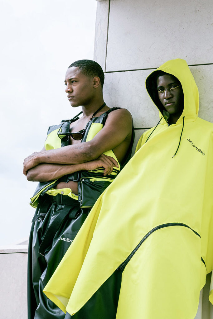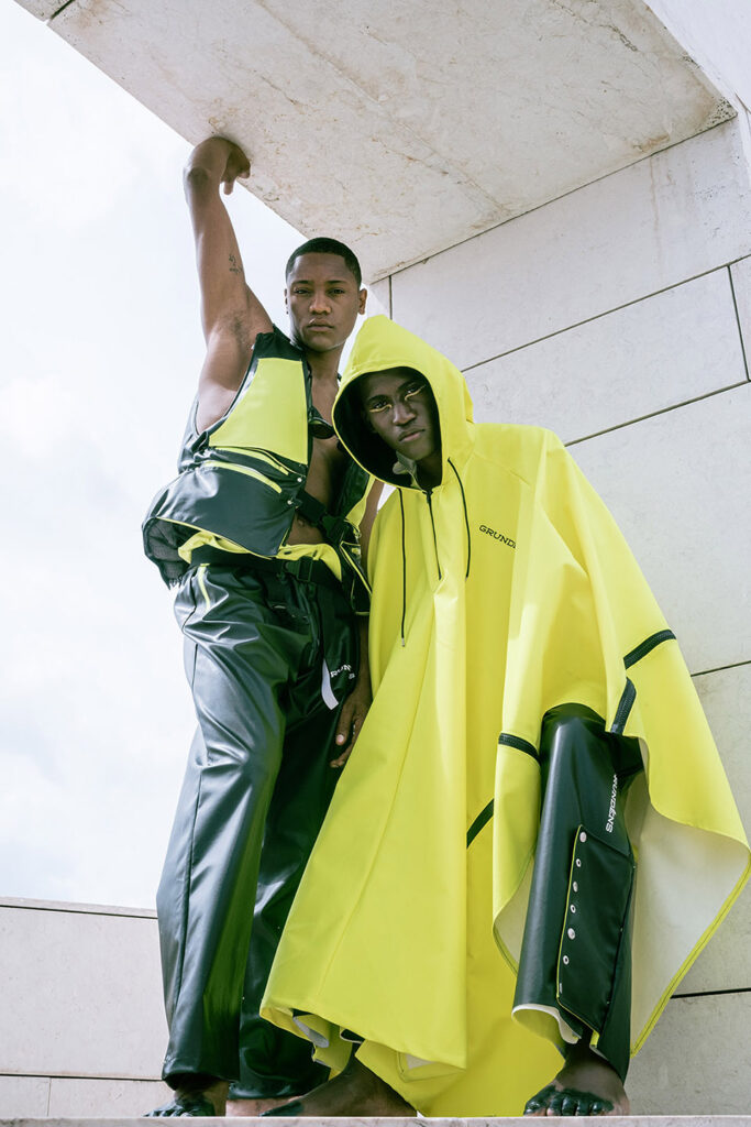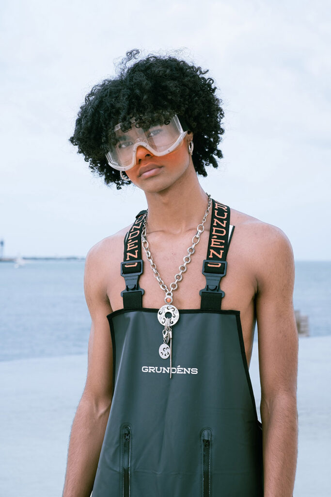 In a world increasingly shaped by climate instability, this collection of upcycled fishing gear reads almost like a prophecy. Using surplus materials from Grundéns — a brand founded in 1926 in Sweden to protect fishermen from the brutality of the North Sea — ETIC’s students, led by professor Luís Emilio, reinterpret functional garments for a generation facing a different kind of storm: the climate crisis.