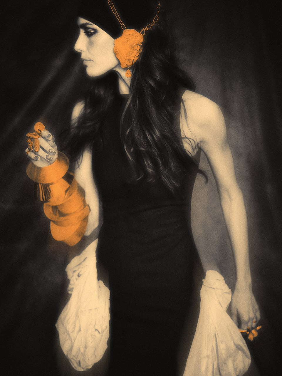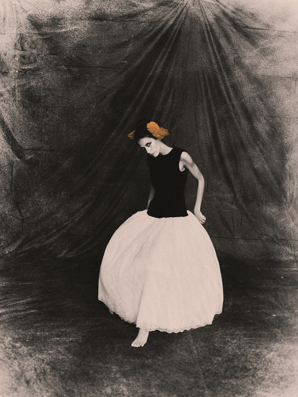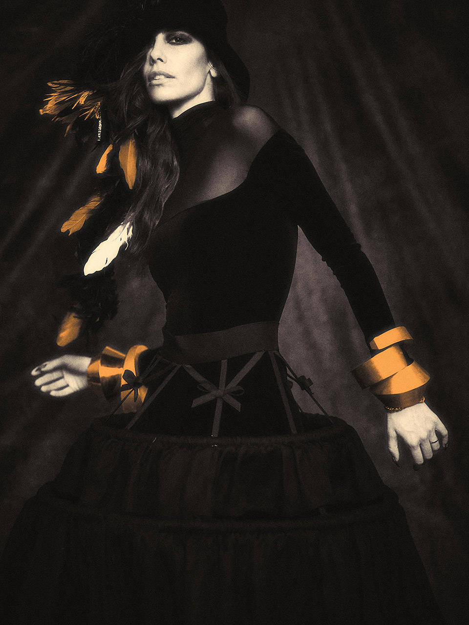 Our team at ZOOT — led by Antonia Rosa with image artist Sergio Santos — approached Isabela’s shoot as if we were painting with light. Inspired by Monet, Renoir, and Toulouse-Lautrec, the goal was to capture emotion, atmosphere, and the vibrating edge between reality and dream. Each image was hand-coloured by Sergio, who added a precise shade of orange to selected areas. For him, the tone carries “energy, creativity and warmth — a blend of passion and optimism.”