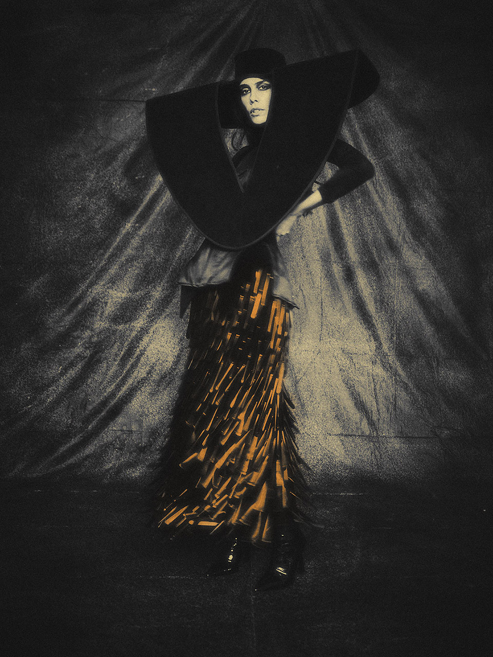 ELISABETTA FRANCHI dress; DINO ALVES skirt; GABRIEL SILVA BARROS hat; ANA VASCONCELOS jewellery.
