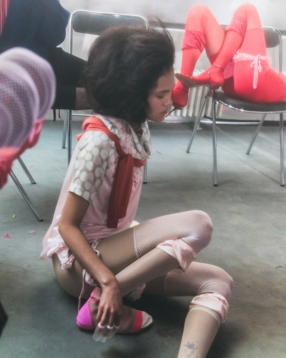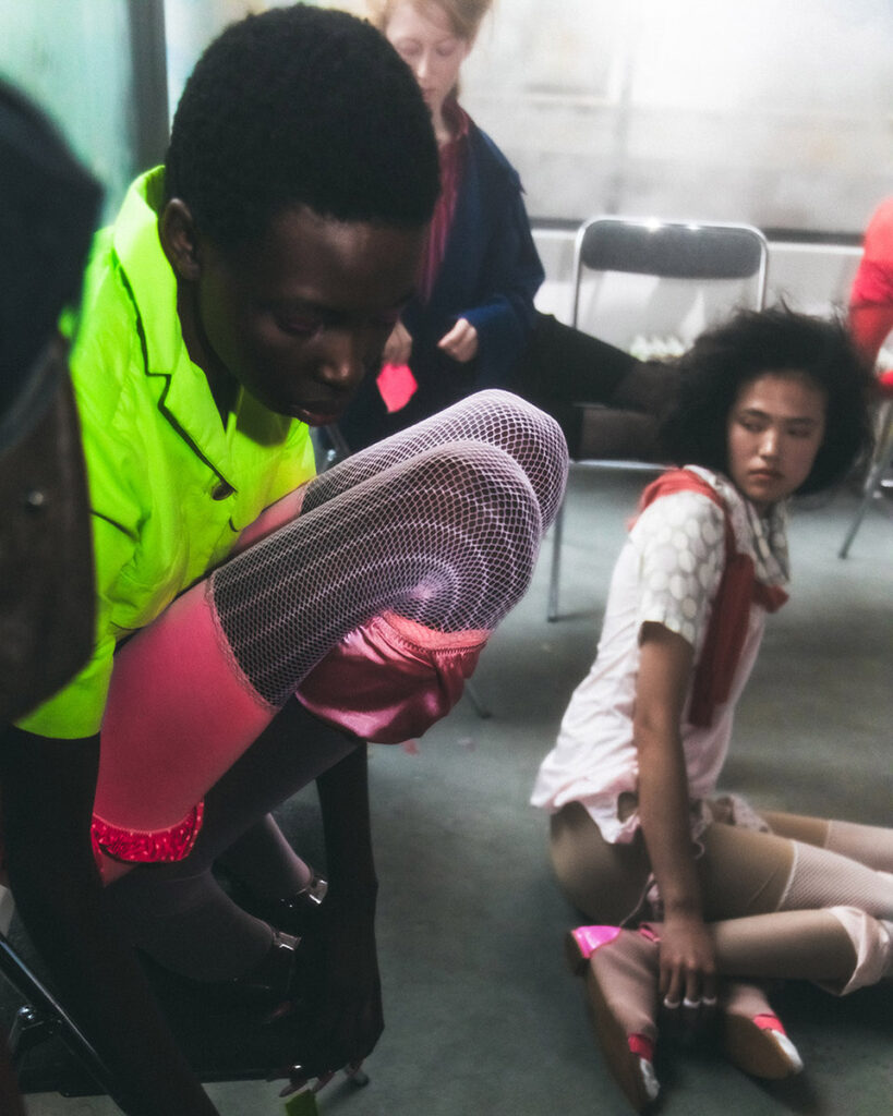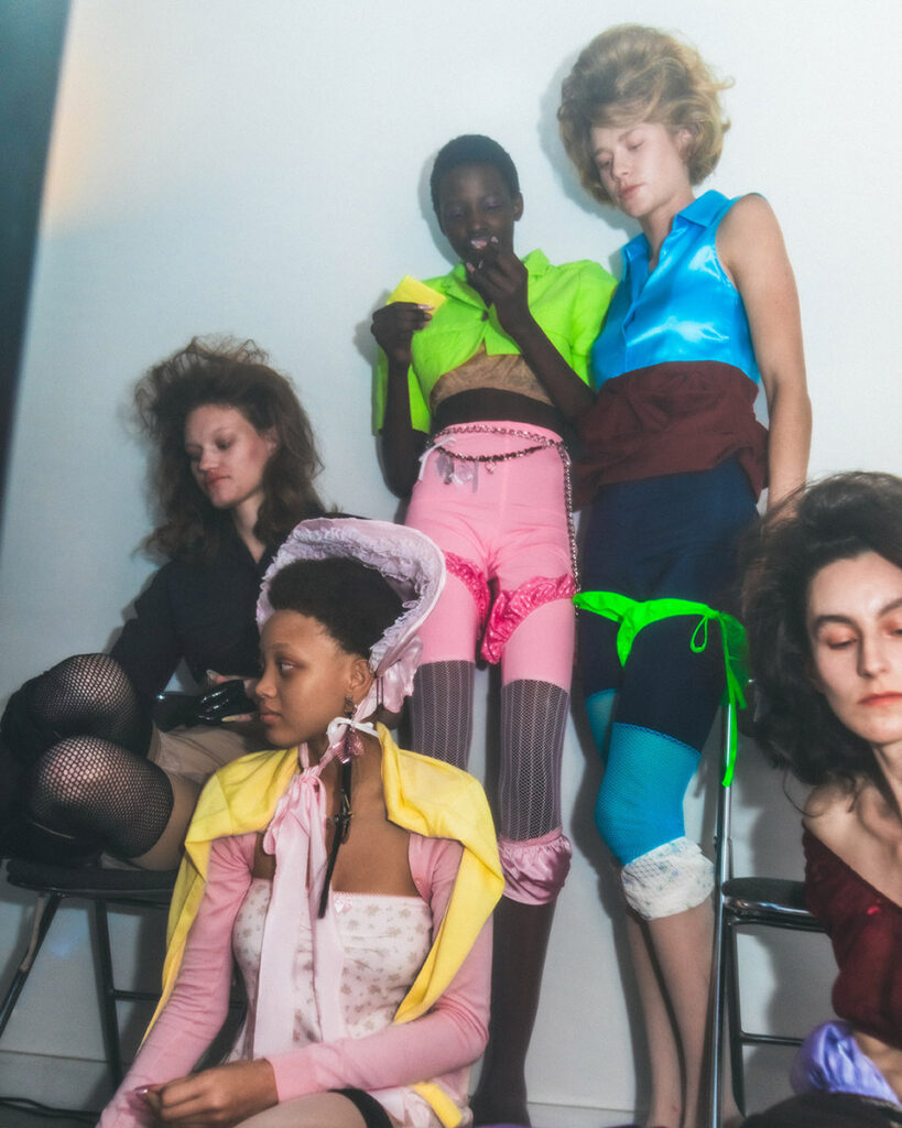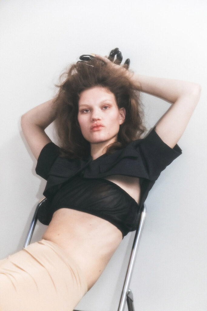 Fax’s universe is divinely dark yet undeniably feminine. Her aesthetic is built on contradiction. It’s fashion that speaks from a woman’s point of view, reclaiming the “kawaii” aesthetic (a Japanese cultural style that celebrates “cuteness” through a focus on innocence, playfulness, and vulnerability, evoking childlike or fragile feelings) and twisting it into something deeper, moodier, and more real. Her casting often includes women of all shapes and sizes, each embodying her belief that “everyday women” are the true protagonists of modern fashion.