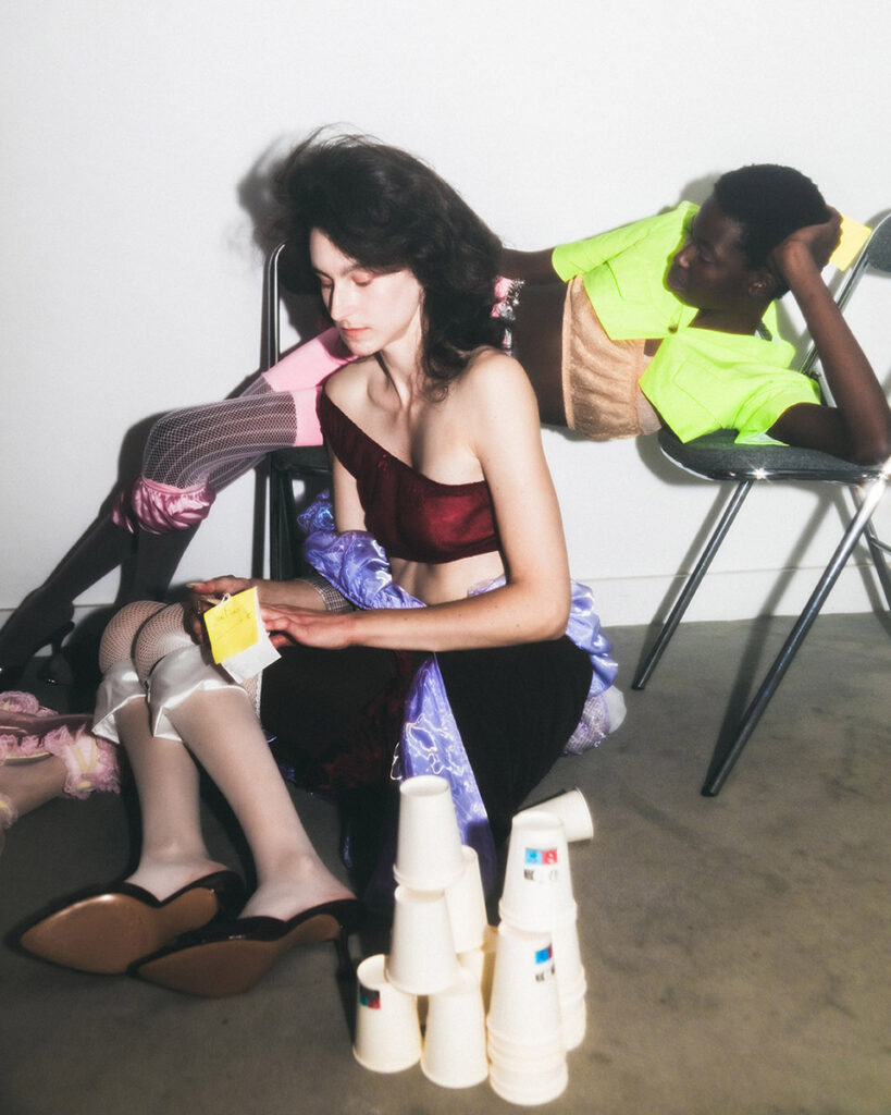 When I was making the collection, it always became too cute…I needed to balance it with something destroyable. Because this twisty moody feeling is more like my memories. – Jenny Fax explains in an interview for Coeval magazine .