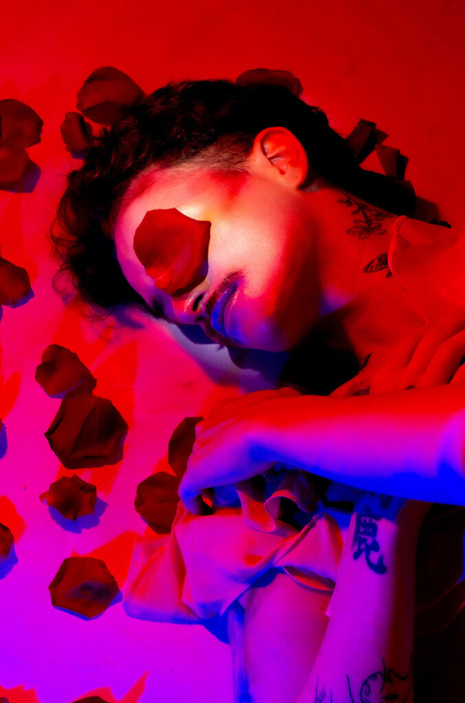 In this context, with it’s deep colors, open petals, closeness to skin, flowers suggest longing, attraction, vulnerabilit, almost like emotional bodies — offering themselves, inviting touch.