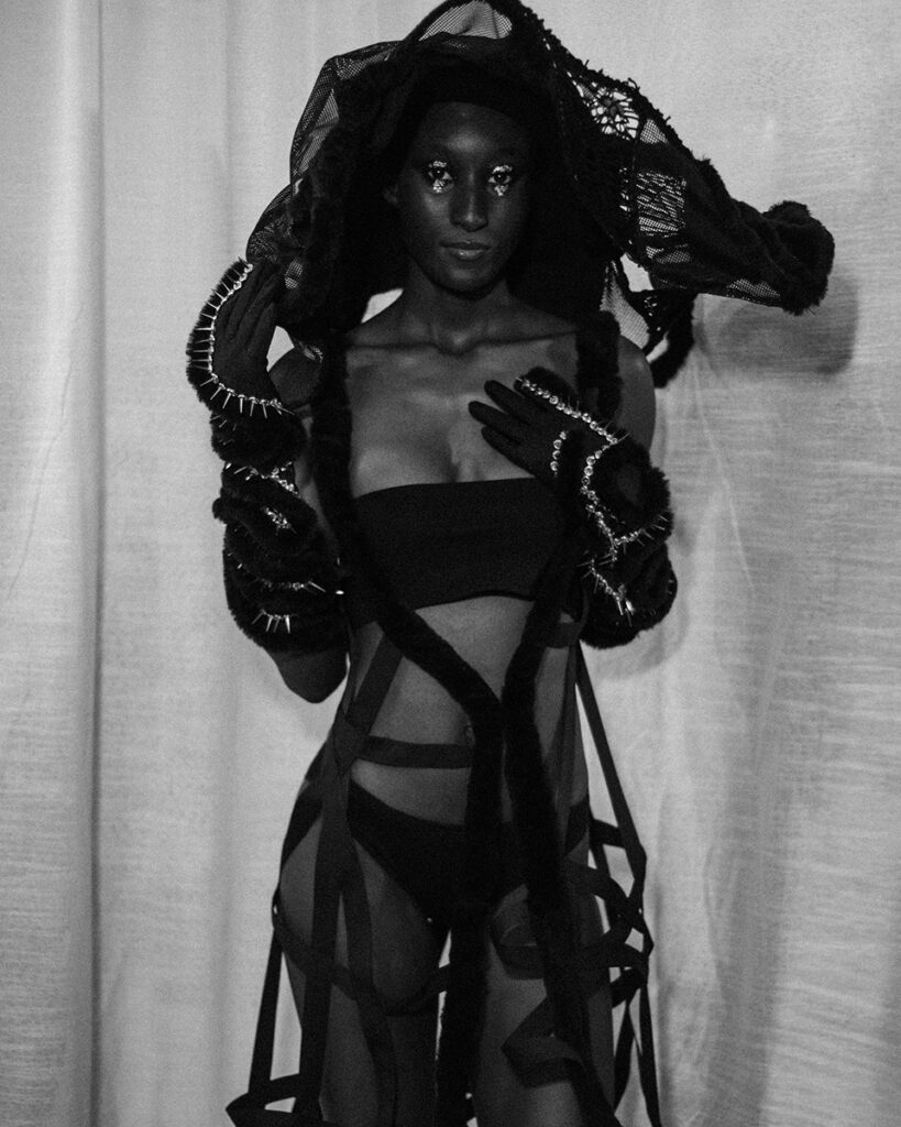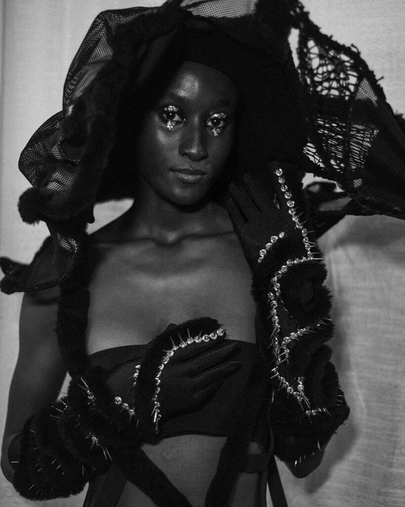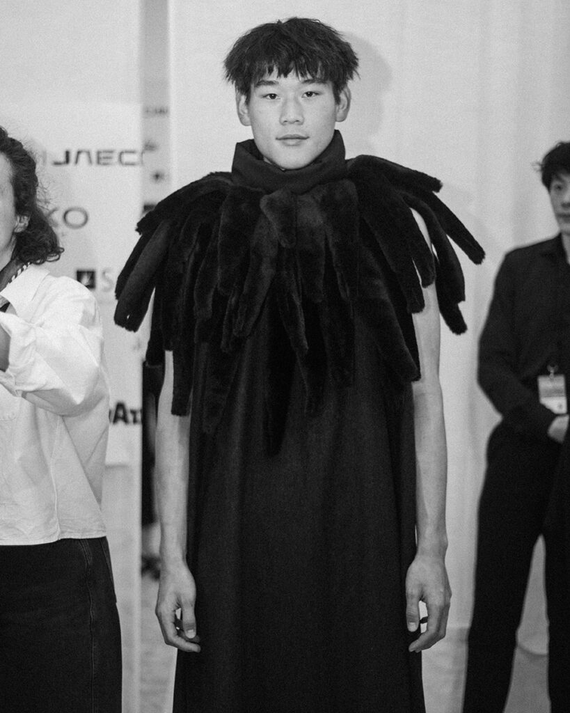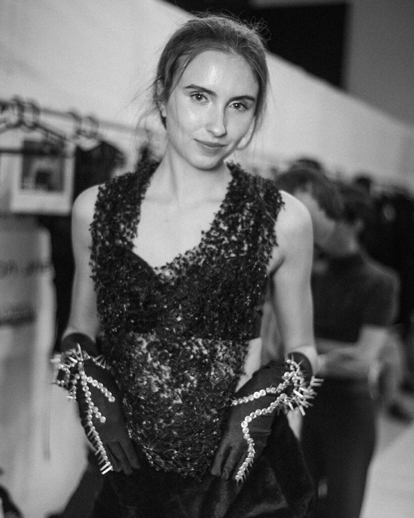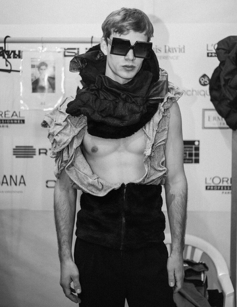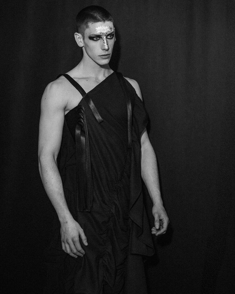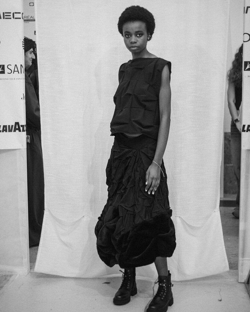 Seven days later, the atelier hit the runway at Pátio da Galé. Backstage moved in slow-motion chaos: Isabella captured last-minute adjustments, fast hands, and rising tension as Valentim’s AW26 collection — upcycled metals, glass stones, and textured dark fabrics — hit with raw energy and audacity.